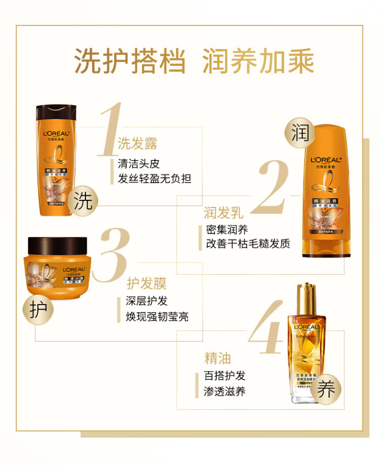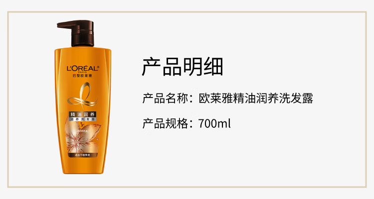L'Oreal Essential Oil Moisturizing Shampoo Smooth and Smooth Shampoo 700ml (new and old packaging shipped randomly)