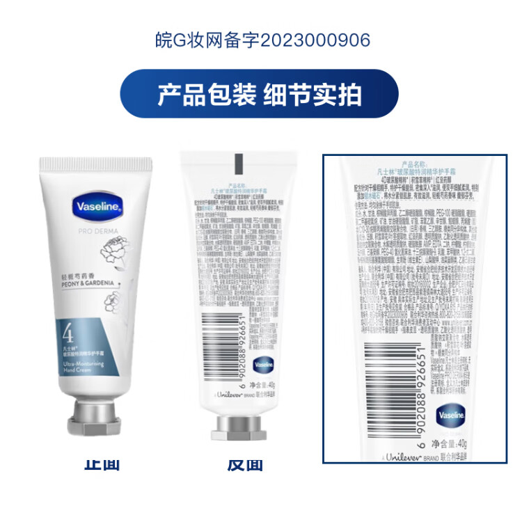 Vaseline hand cream 40g gardenia and peony hyaluronic acid moisturizing and lasting fragrance men and women autumn and winter moisturizing