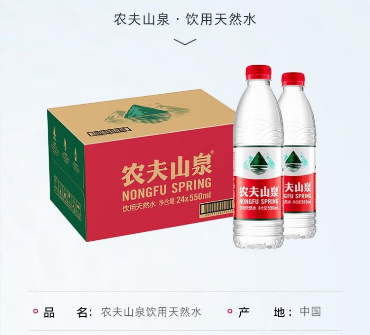 Nongfu Spring Drinking Water Natural Drinking Water 550ml*24 Bottles Full Box Plastic Film Random Delivery