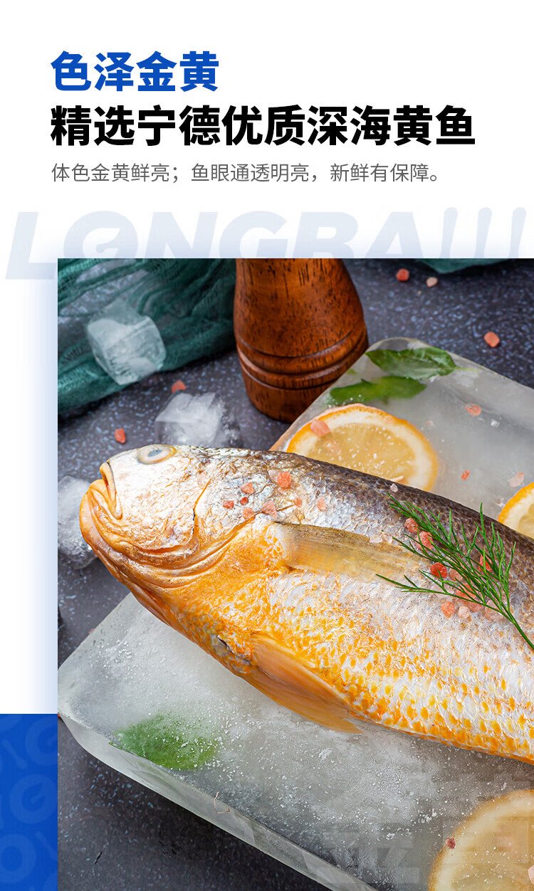 GUO LIAN Guolian Sanlu yellow croaker 2 pieces, total net weight 2Jin Jin is equal to 0.5kg, domestic Ningde East China Sea large yellow croaker dinner seafood and aquatic ingredients