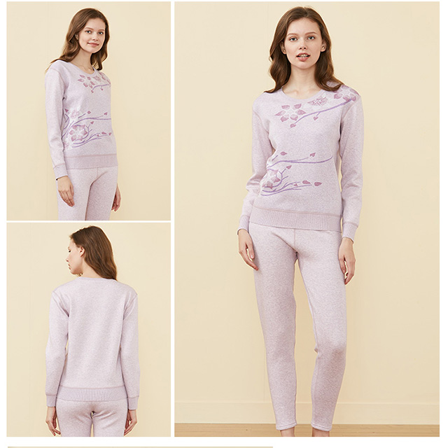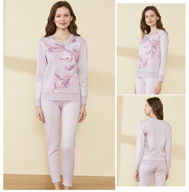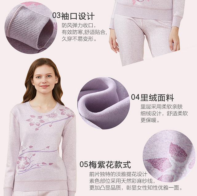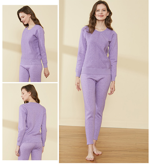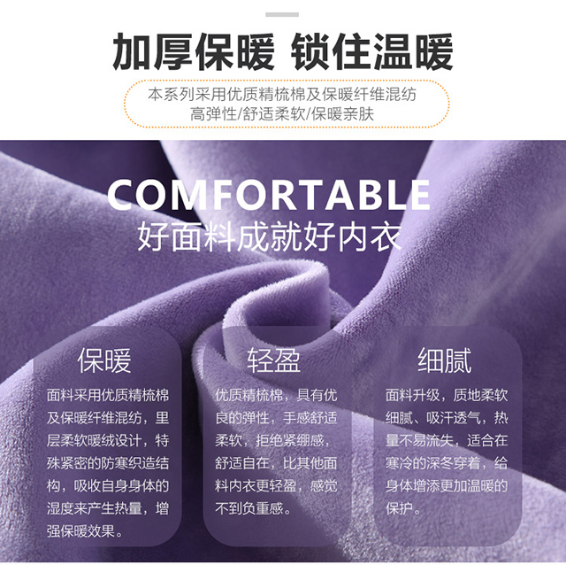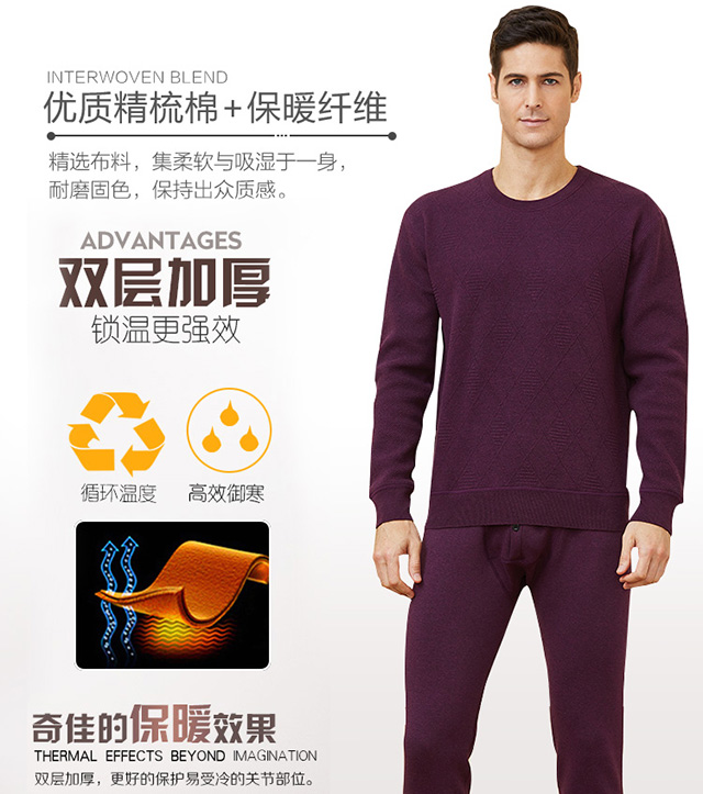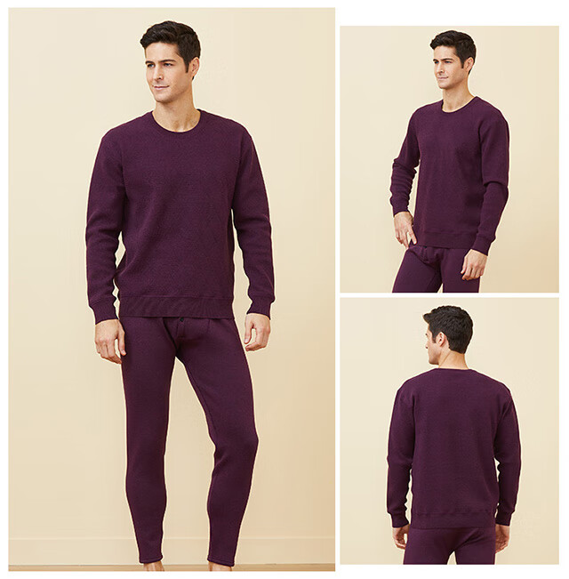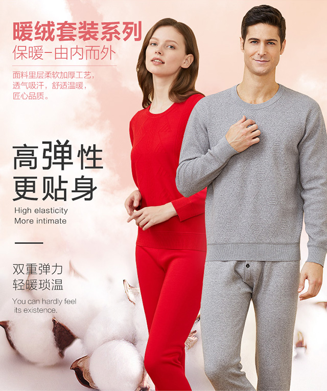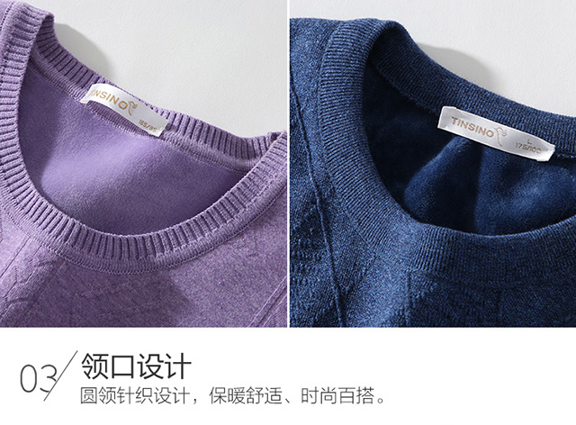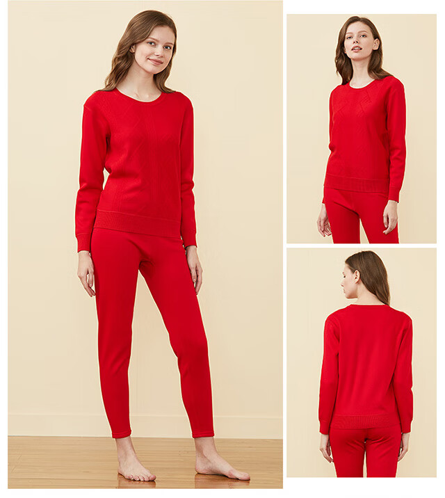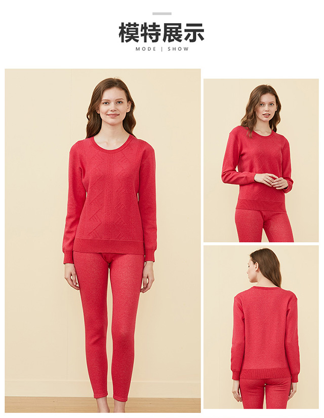 Silk Bird TINSINO thermal underwear for men and women, round neck, thickened warm soft velvet imitation sweater thermal suit, hemp red L (165/95)
