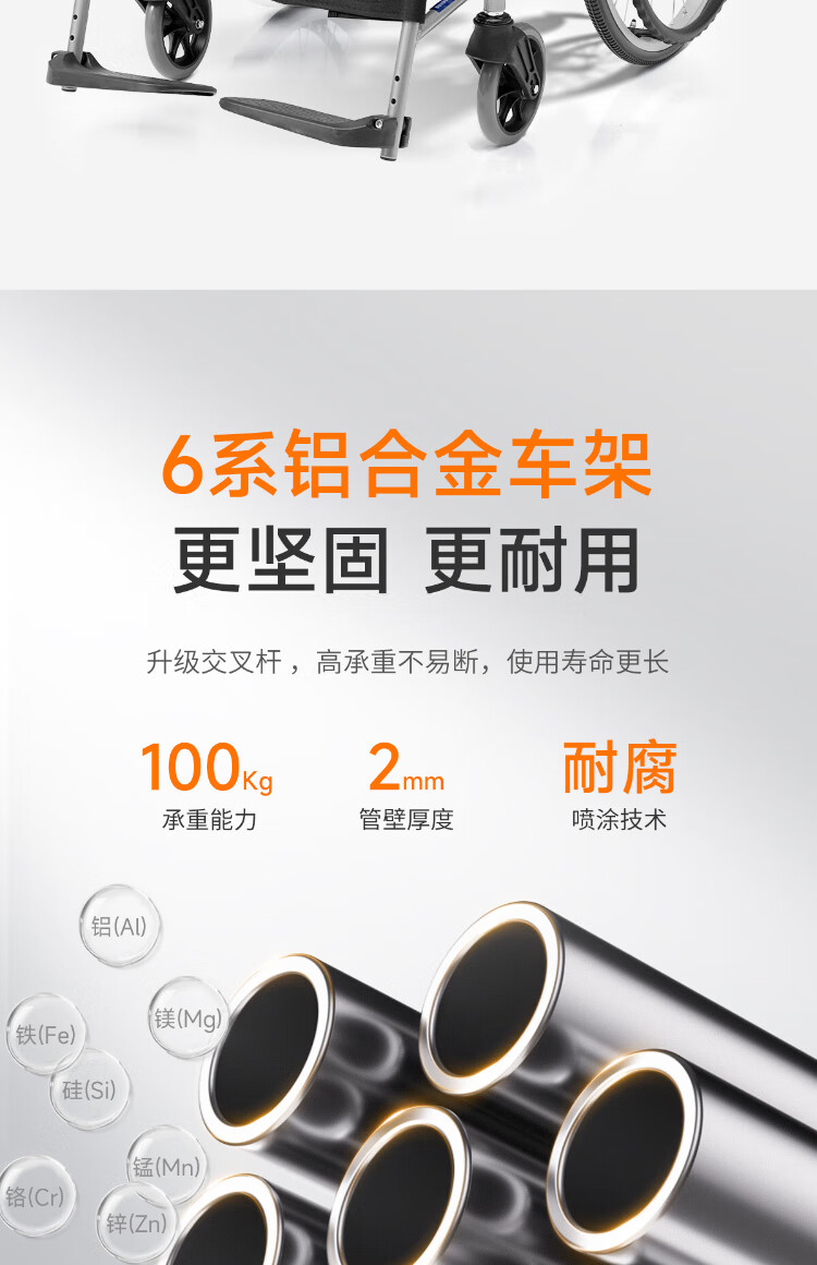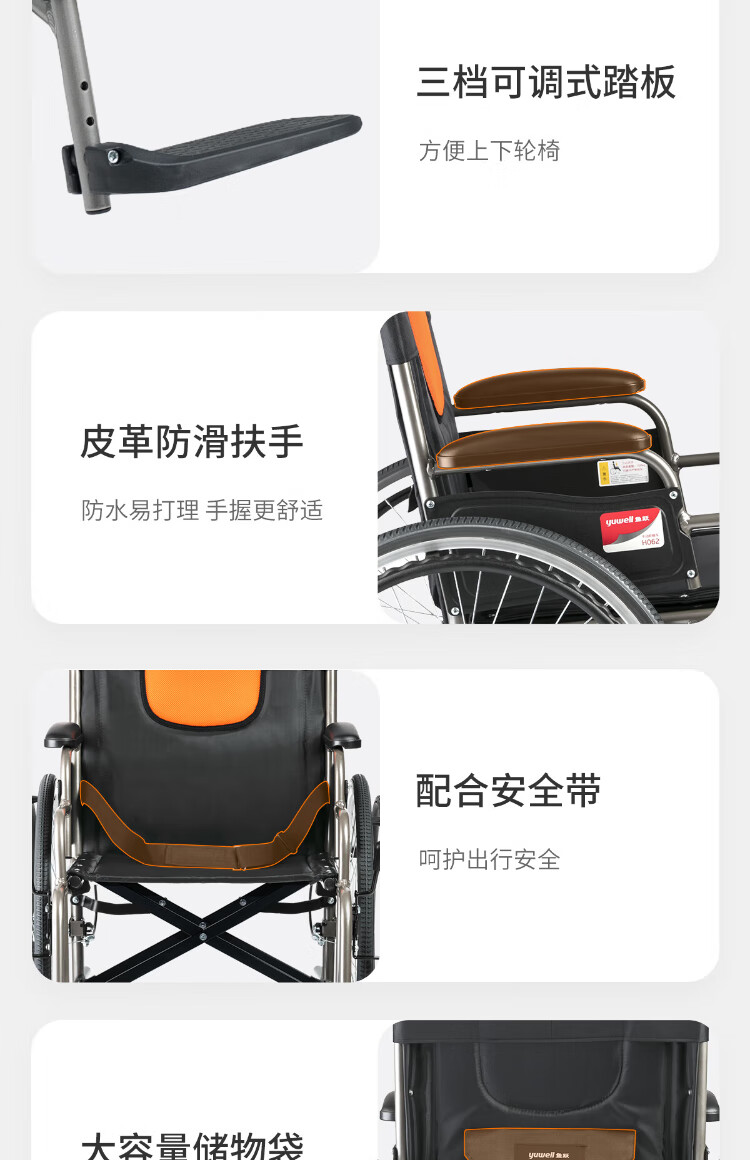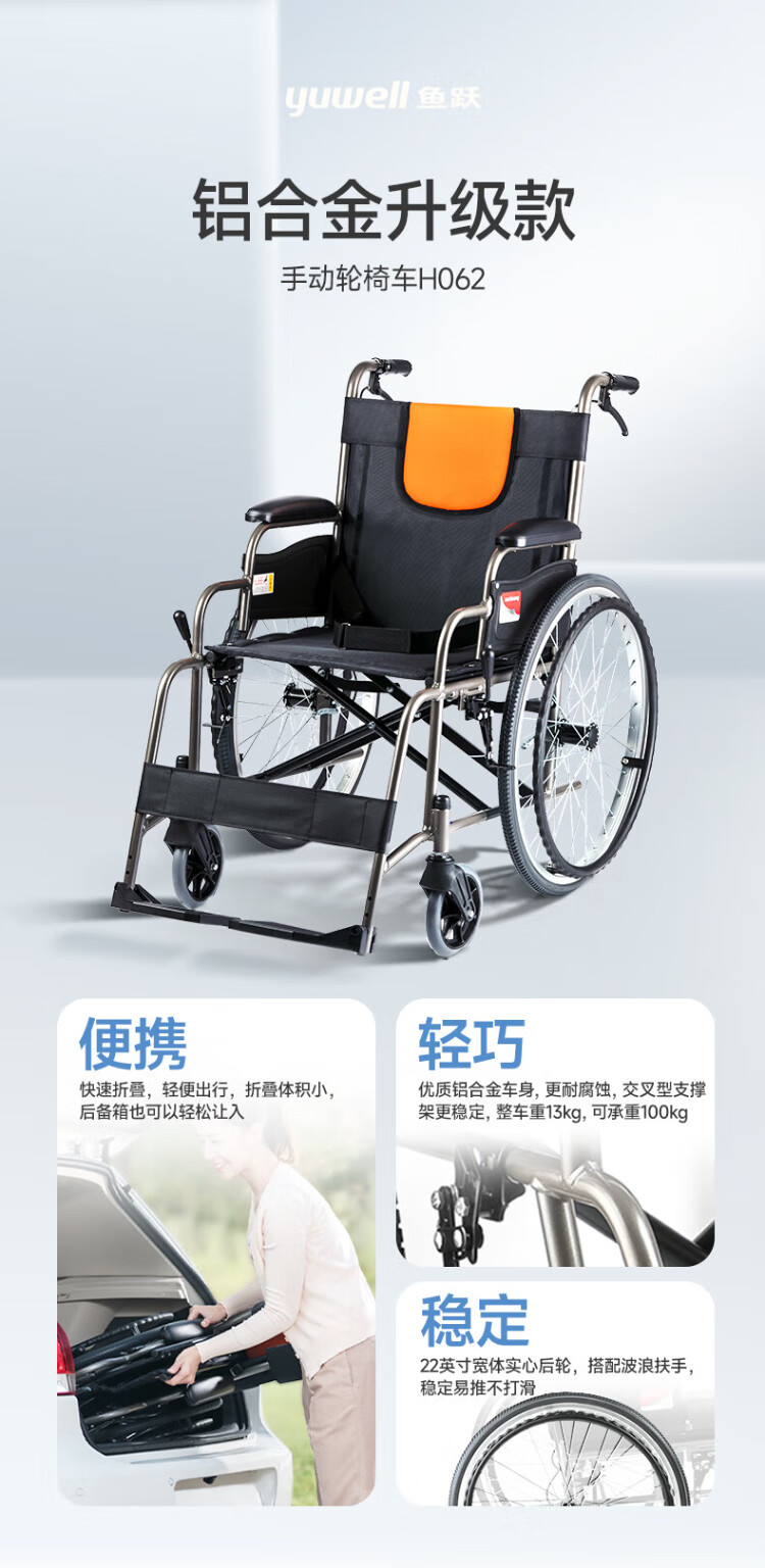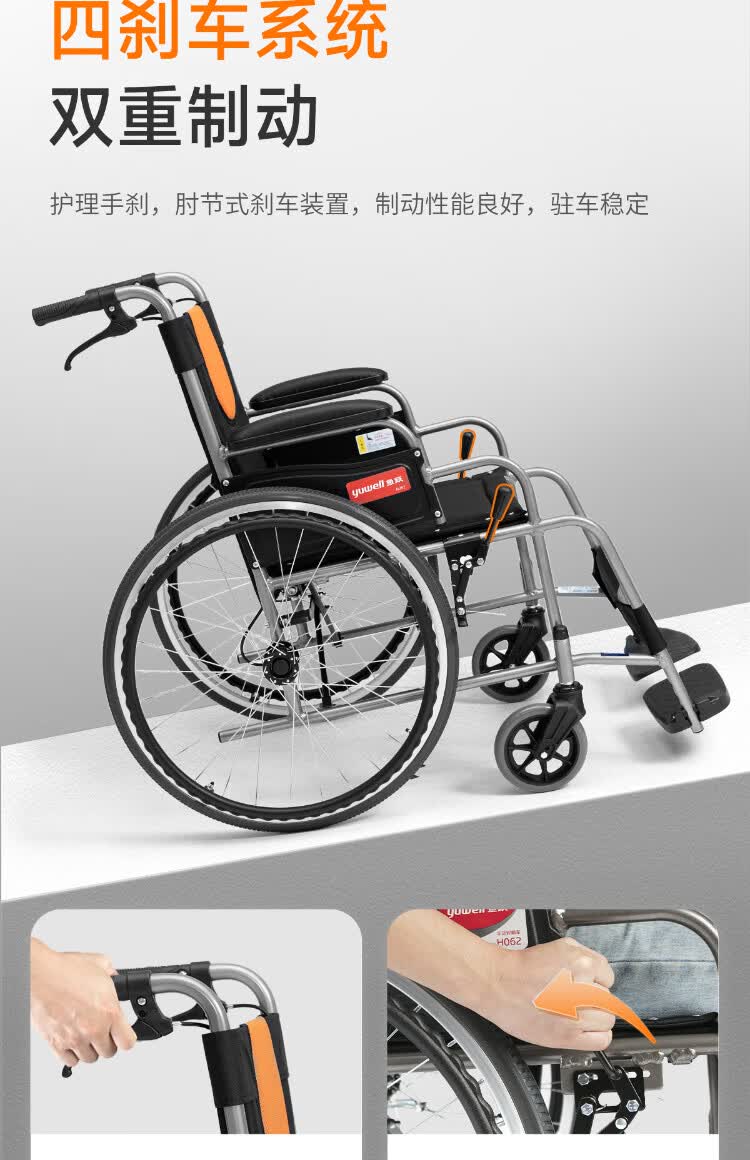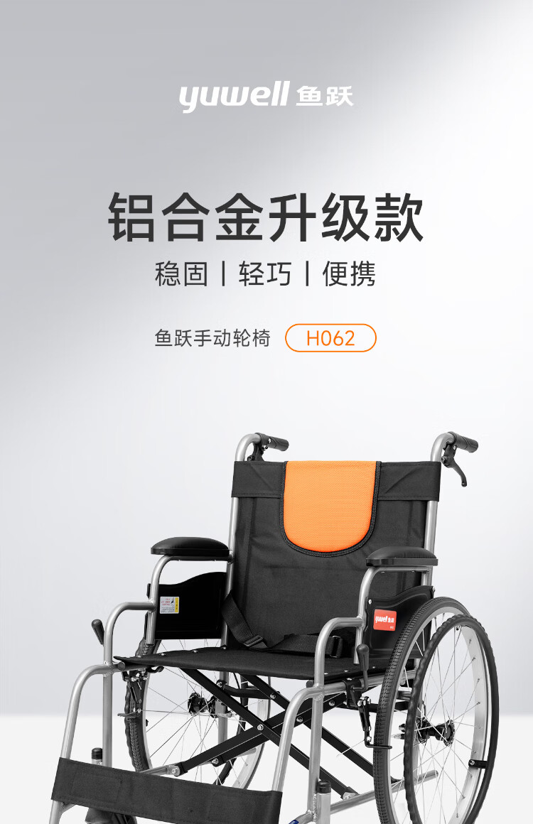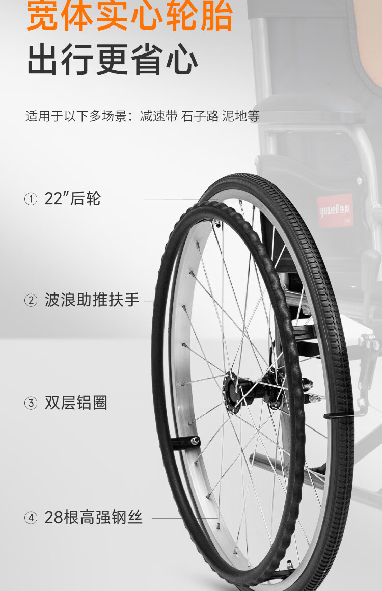Yuwell Silla de Ruedas Manual H062 Plegable Ancianos Ligero Inflable Aleación de Aluminio Rueda de Empuje de Viaje