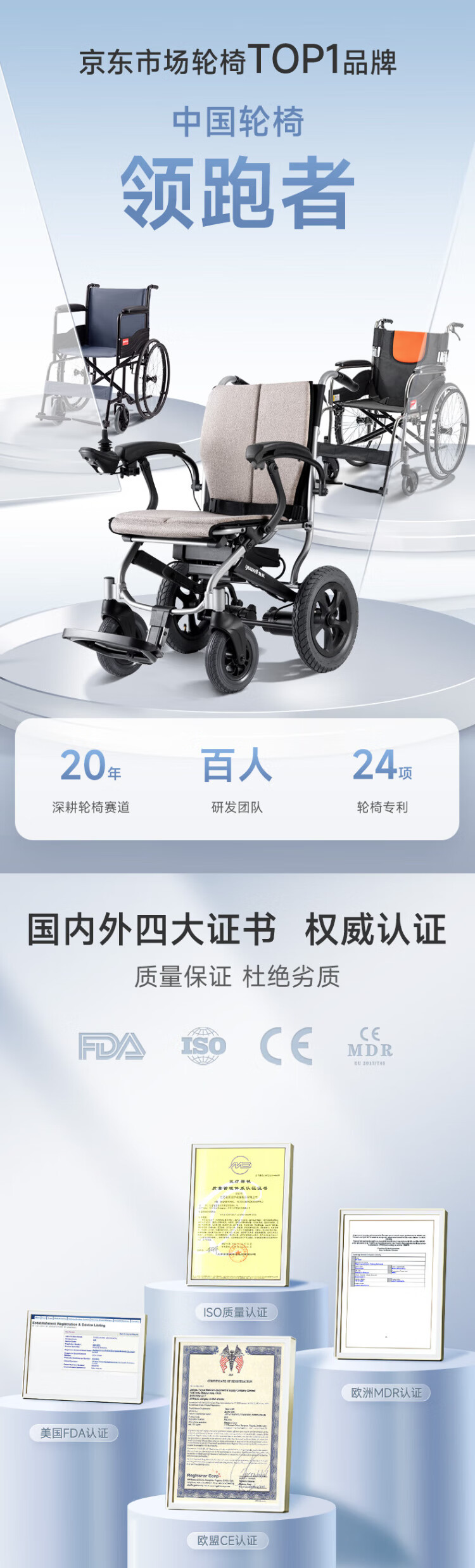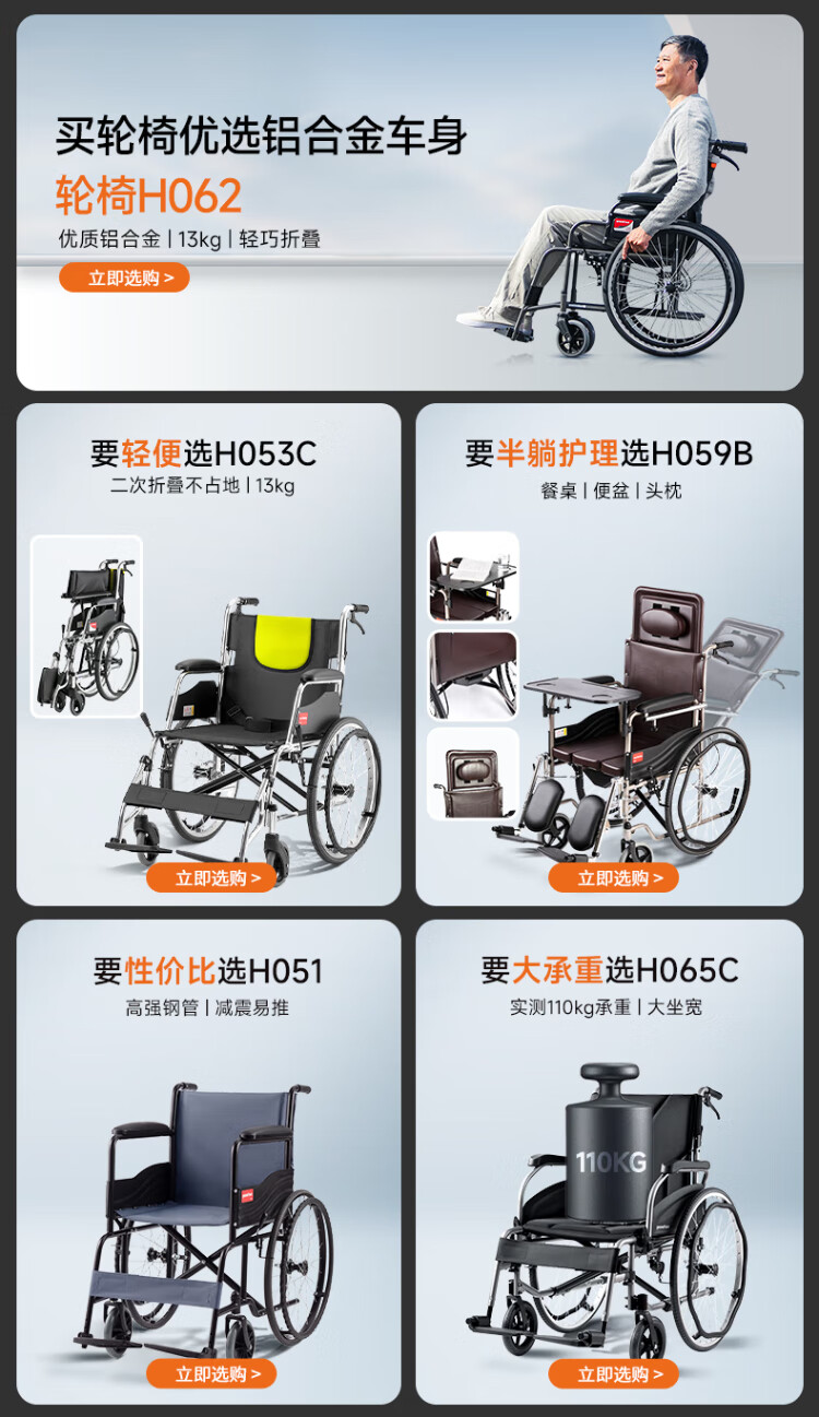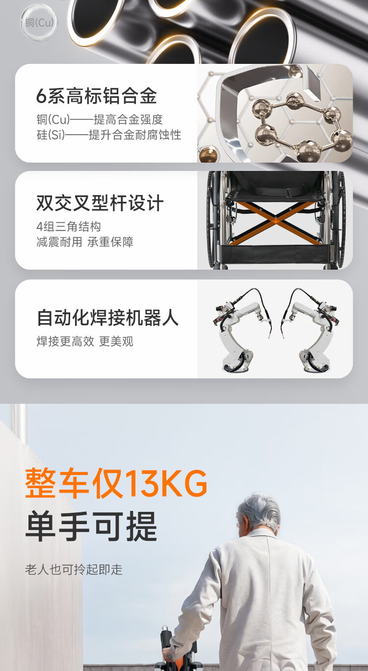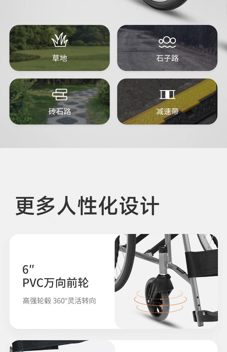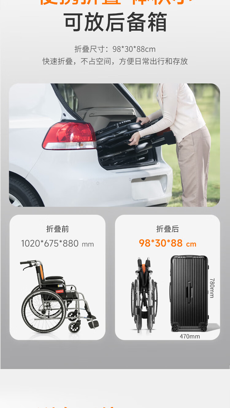 Yuwell Silla de Ruedas Manual H062 Plegable Ancianos Ligero Inflable Aleación de Aluminio Rueda de Empuje de Viaje