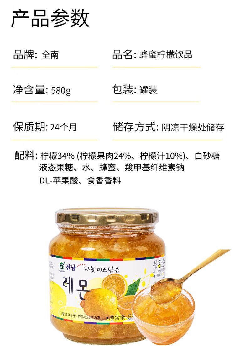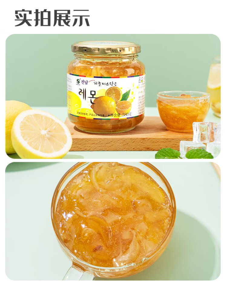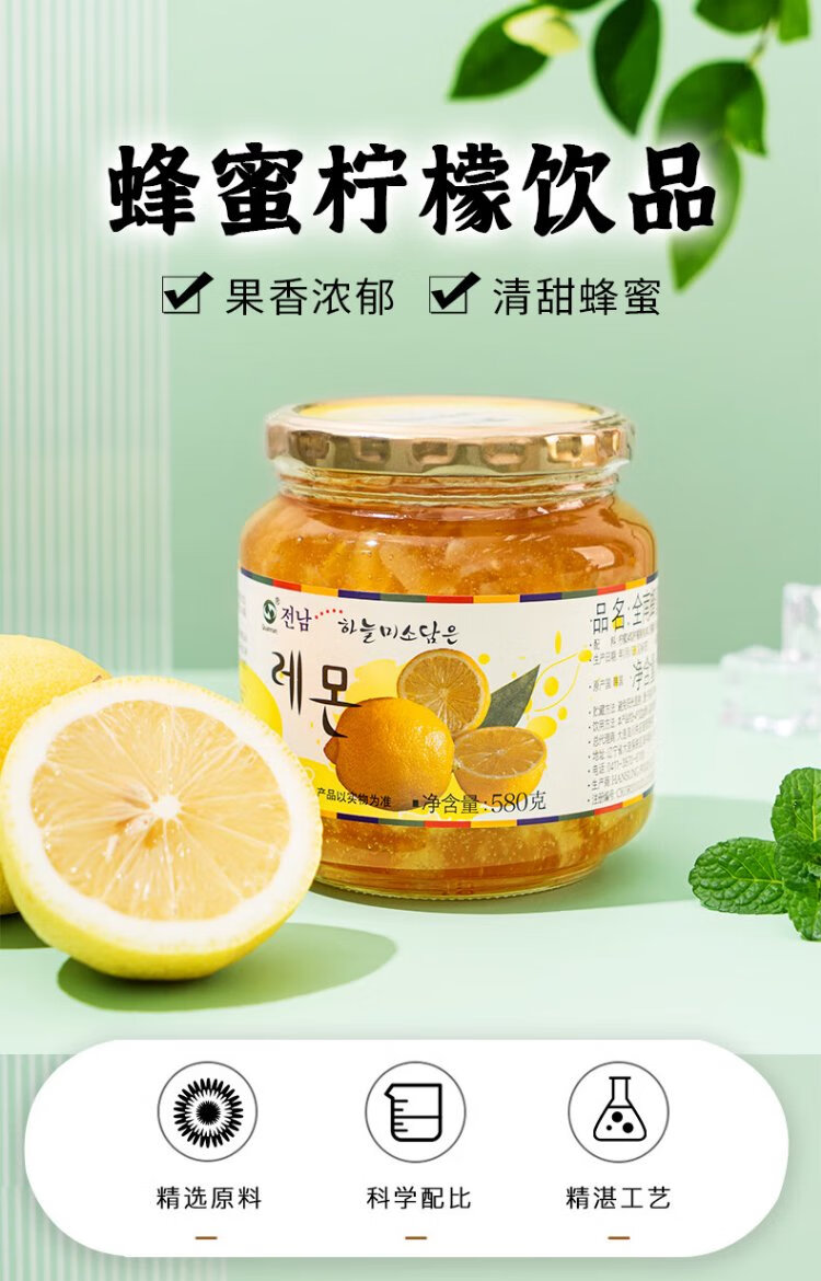 Jeonnam Honey Lemon Tea 580g Korean original imported jam VC fruit tea with breakfast hot and cold drink 0 fat