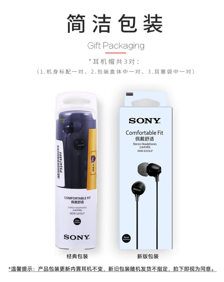 Sony (SONY) MDR-EX15LP In-Ear Wired Headphones for Mobile Phones and Computers, Universal Music Listening Headphones, Black, New Year, Valentine's Day Gift