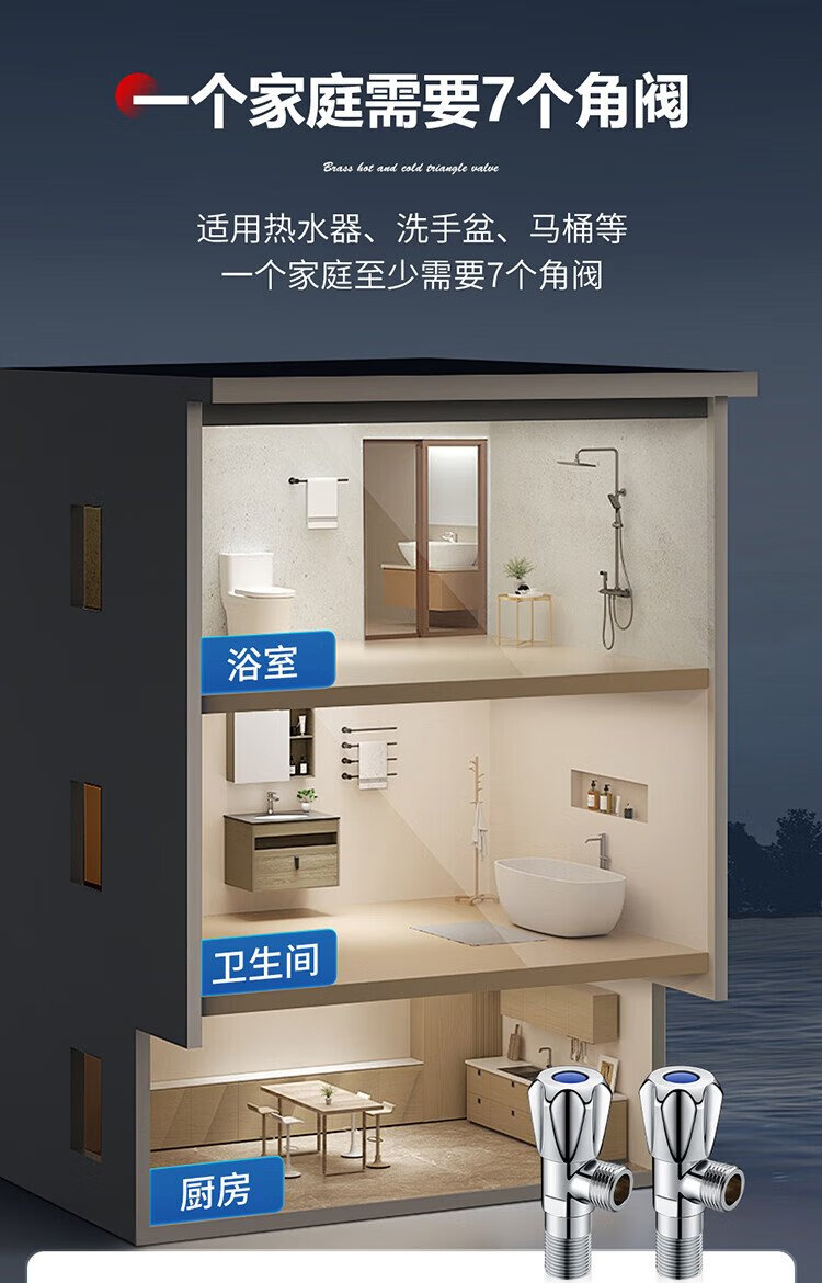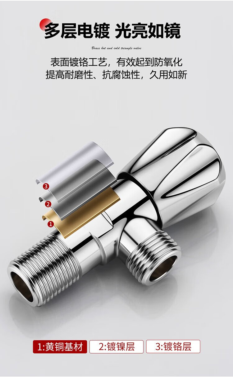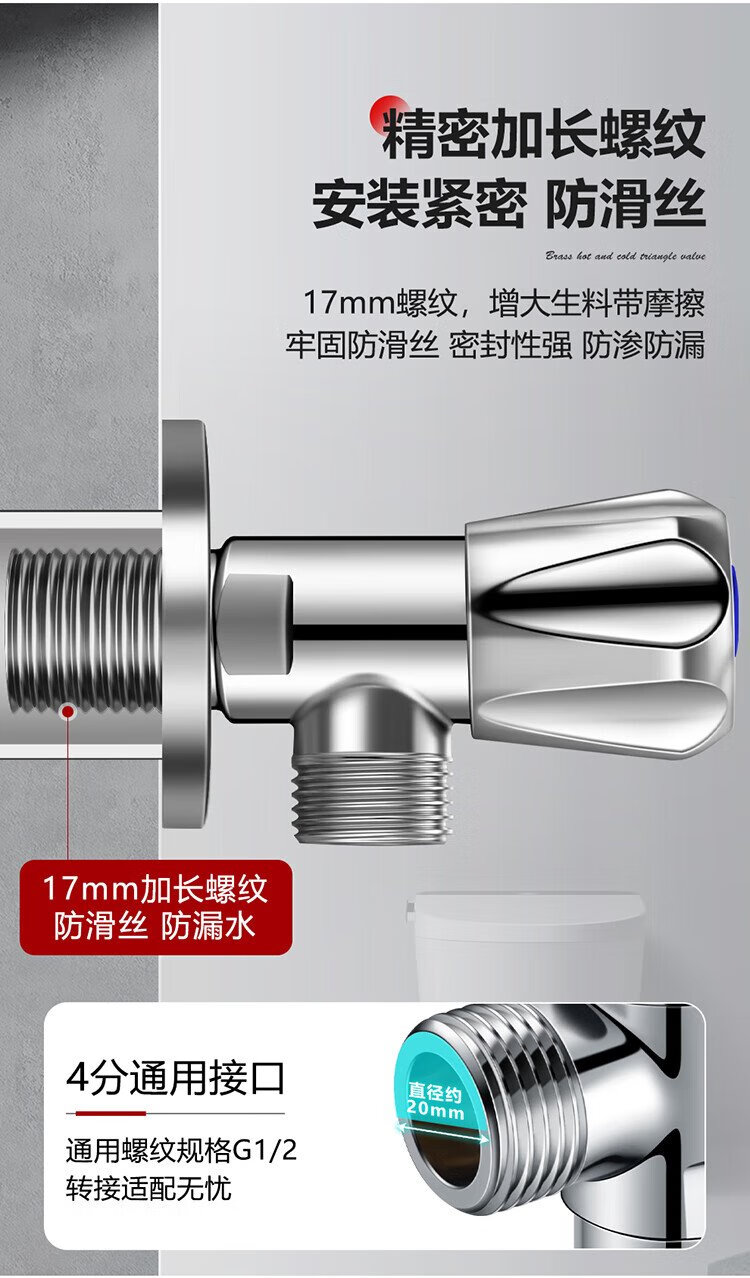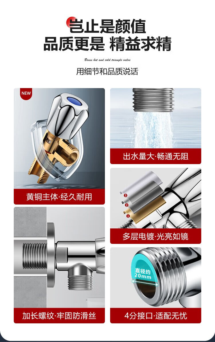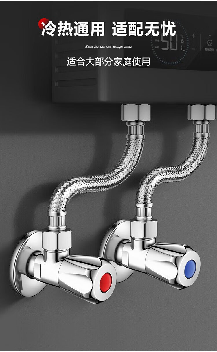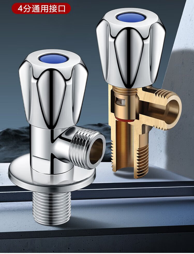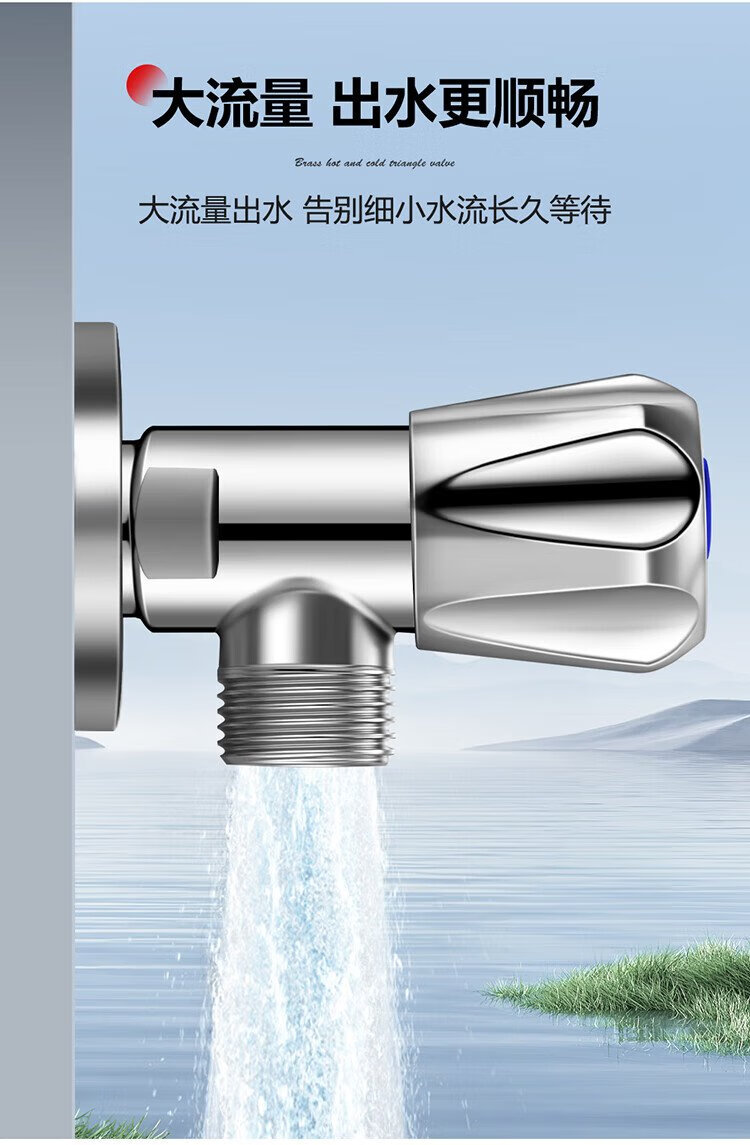 Larsd angle valve full copper thickened hot and cold water quick opening extended triangular valve eight-character valve water stop valve 4 points inlet and outlet LD112C
