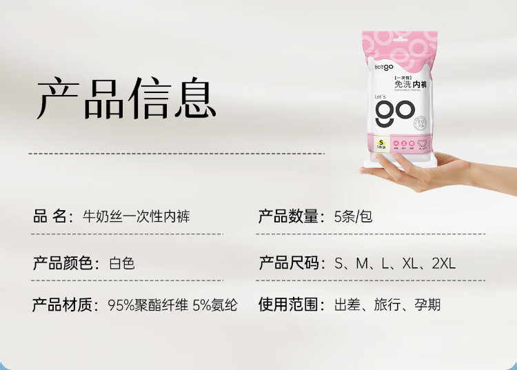Freego disposable underwear women's milk silk sterilization-free 5-pack travel business trip pregnant women menstrual period women's L size