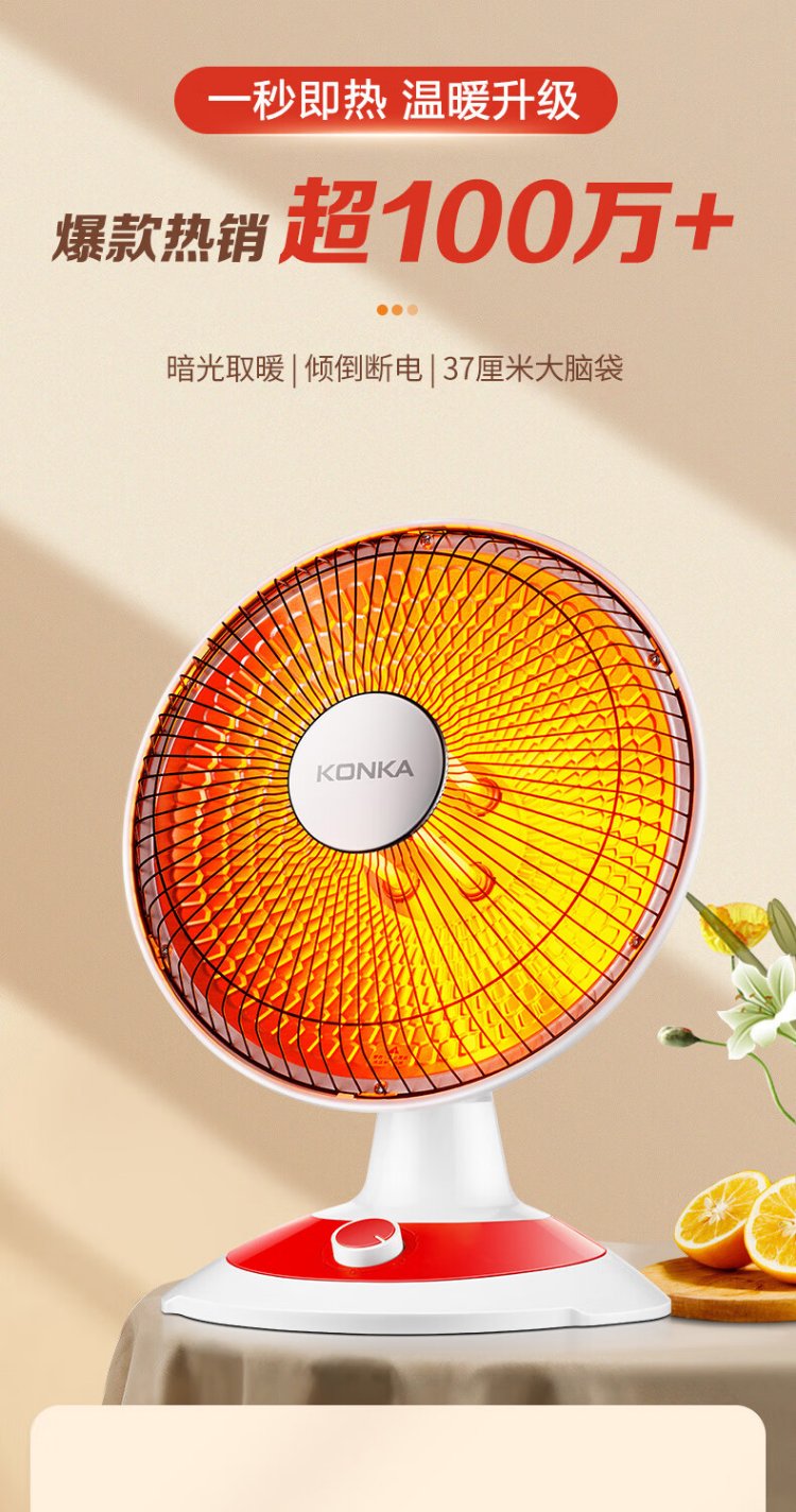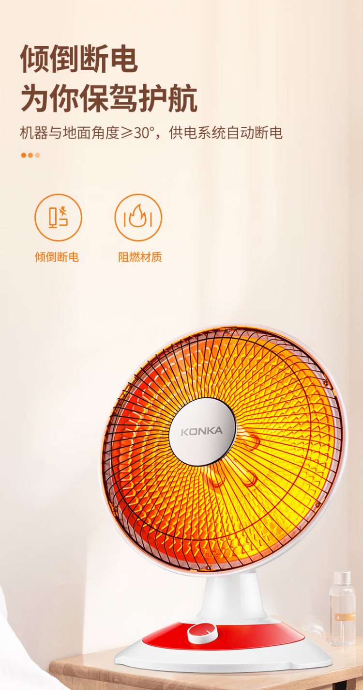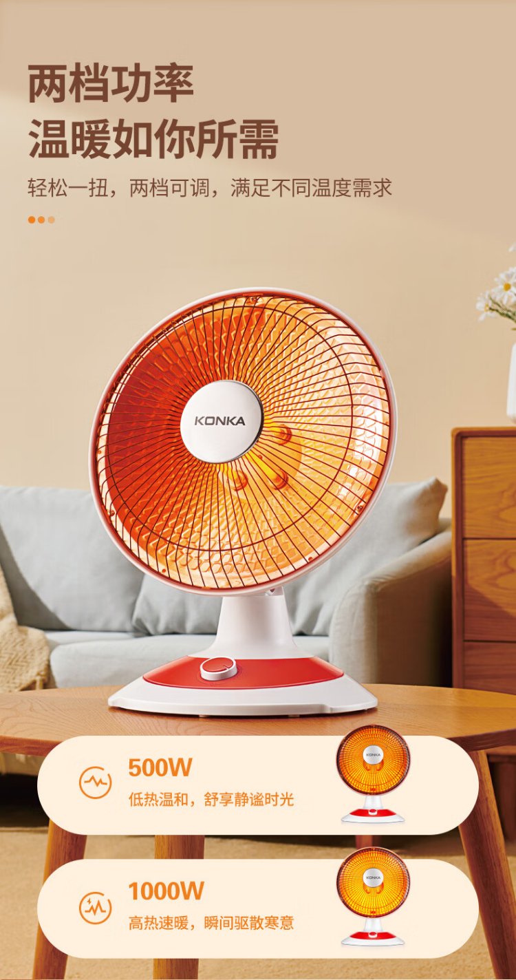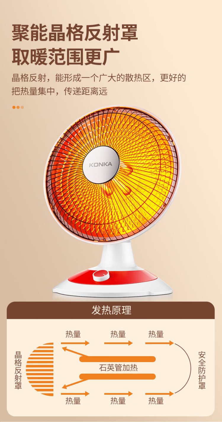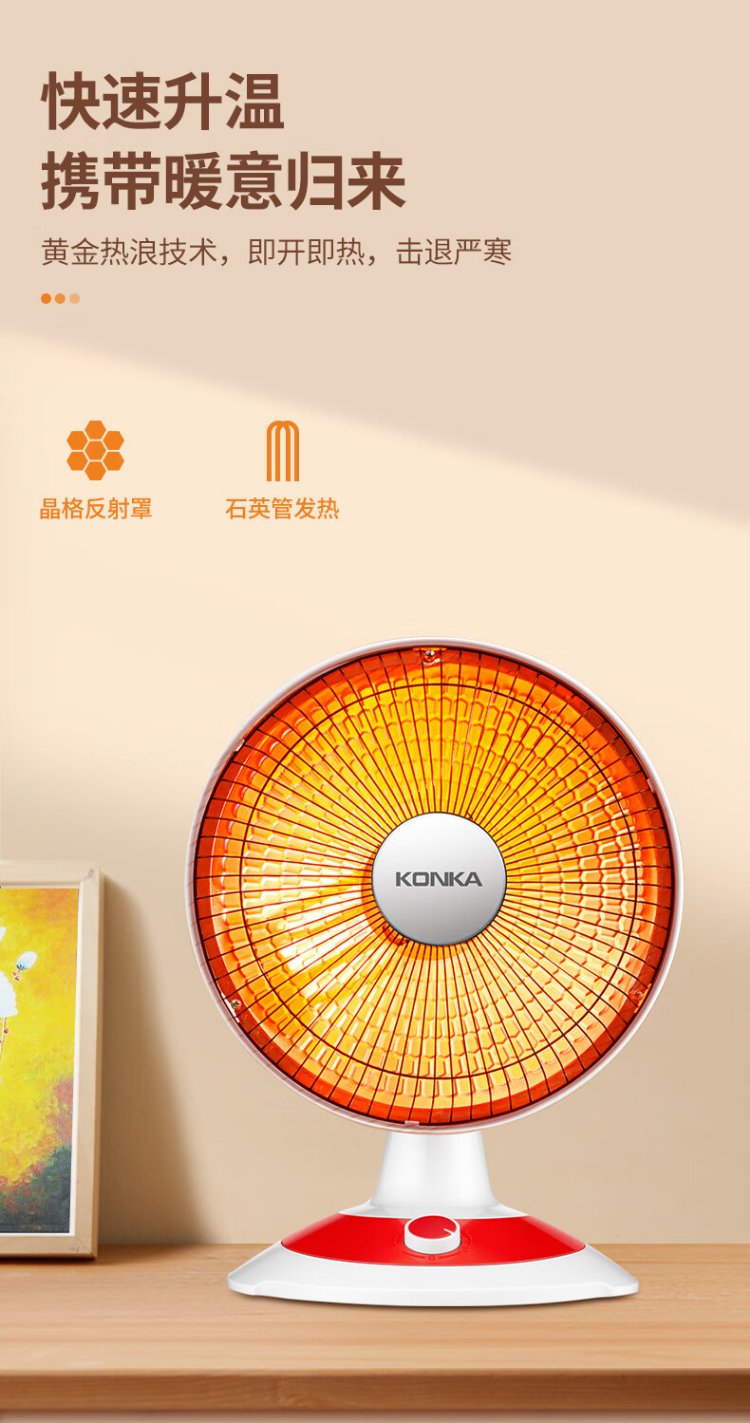 KONKA heater household small solar electric heater light sound electric heater heating stove desktop electric heating two-speed adjustment fast heat dumping power off KH-TY15