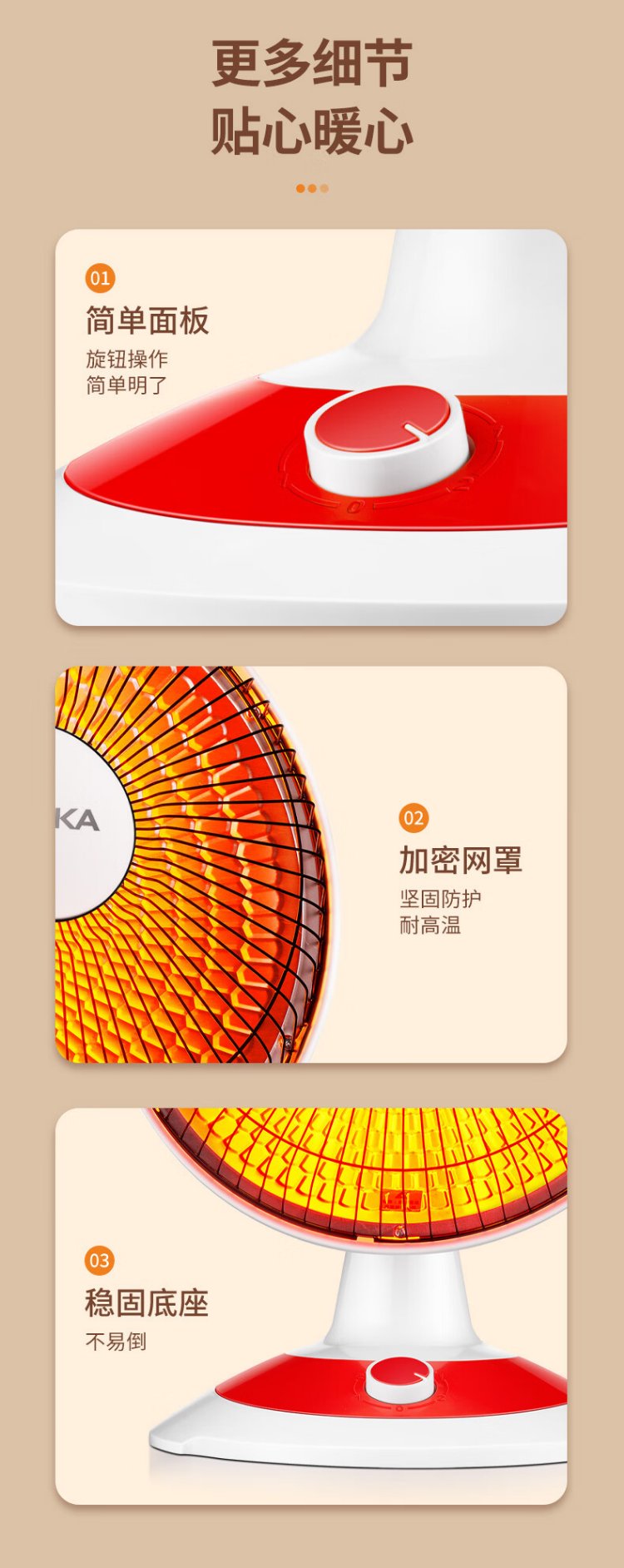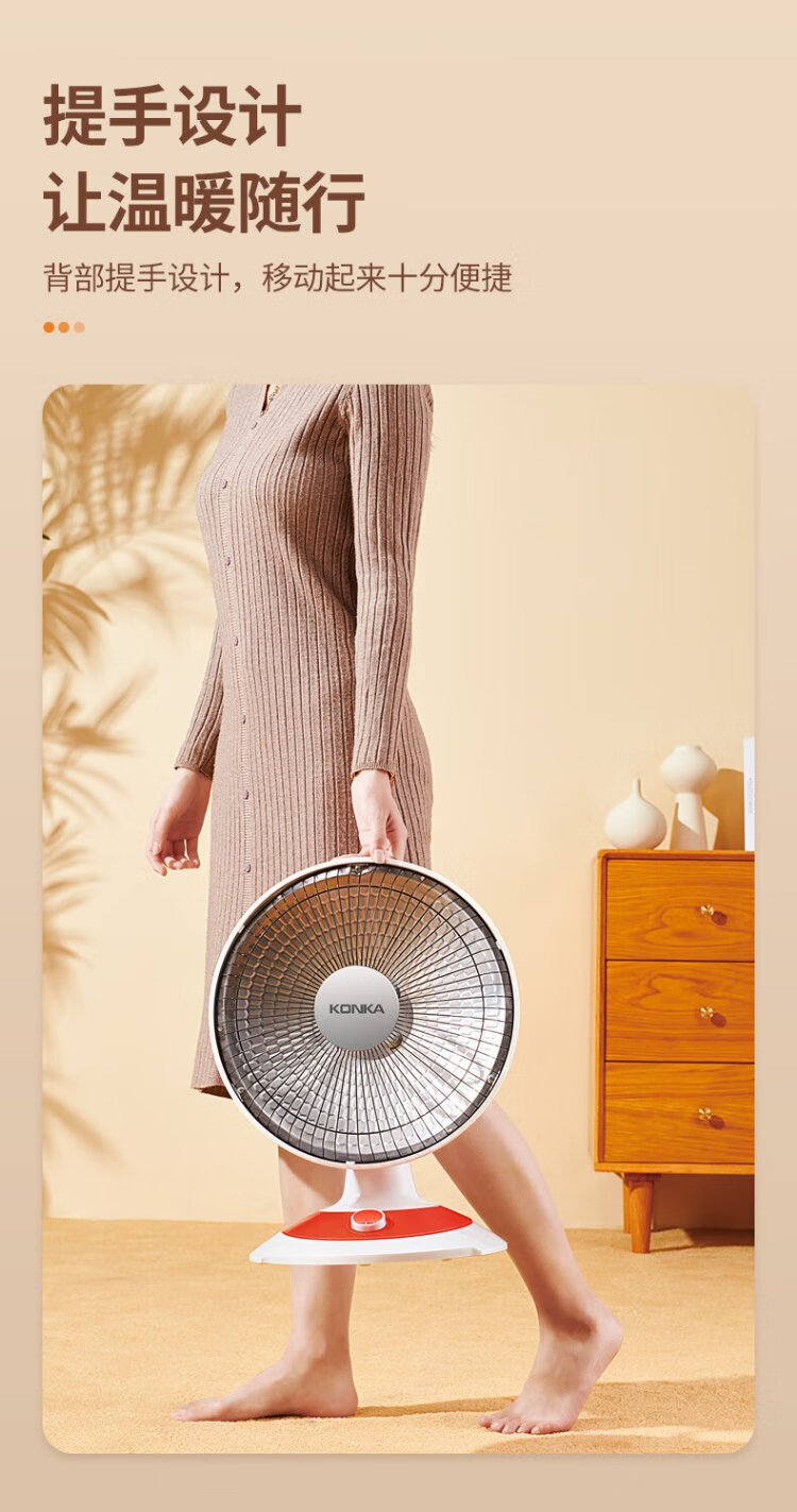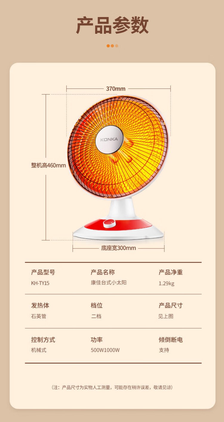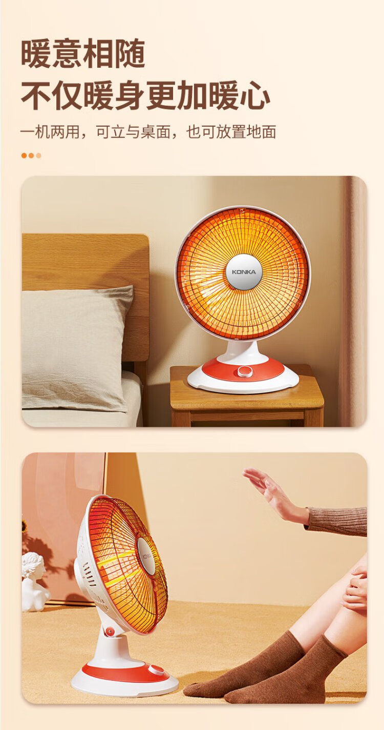 KONKA heater household small solar electric heater light sound electric heater heating stove desktop electric heating two-speed adjustment fast heat dumping power off KH-TY15