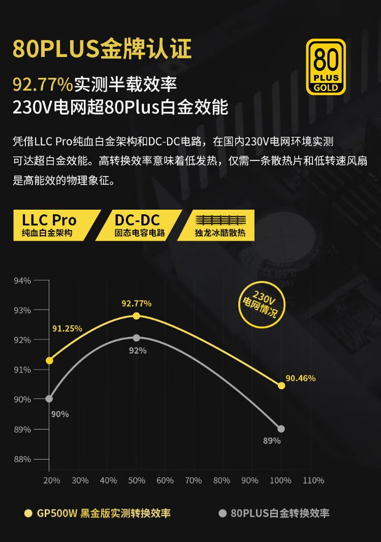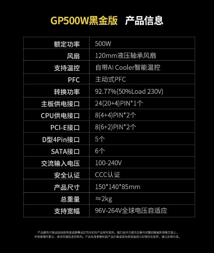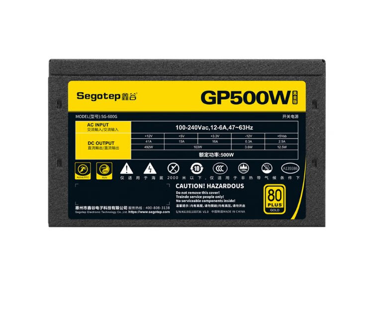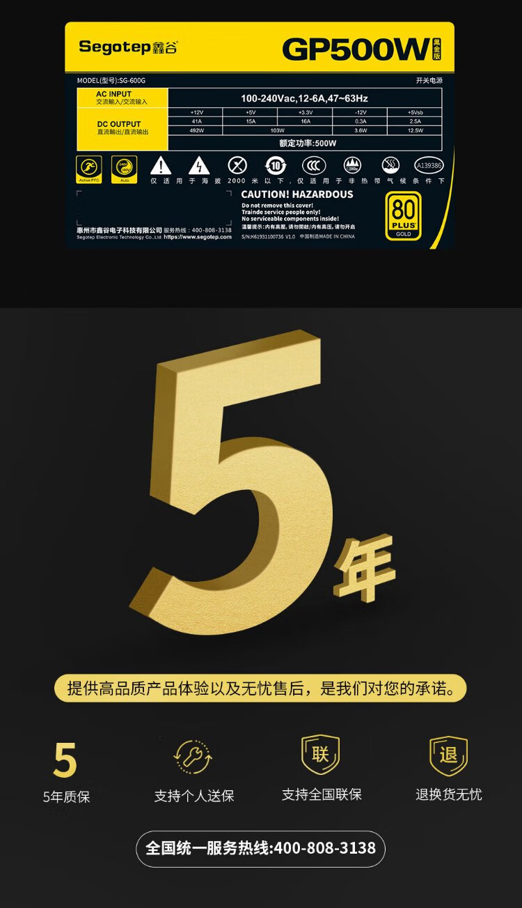 Xingu (segotep) GP500W black gold version power supply (full Japanese capacitor/80plus gold medal/dual CPU power supply/12CM temperature control fan/desktop computer console game power supply)