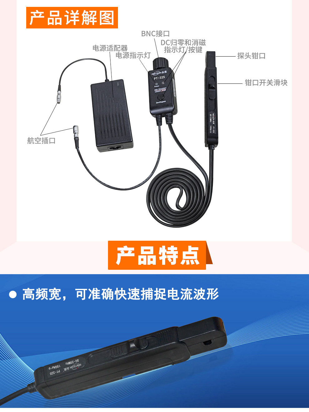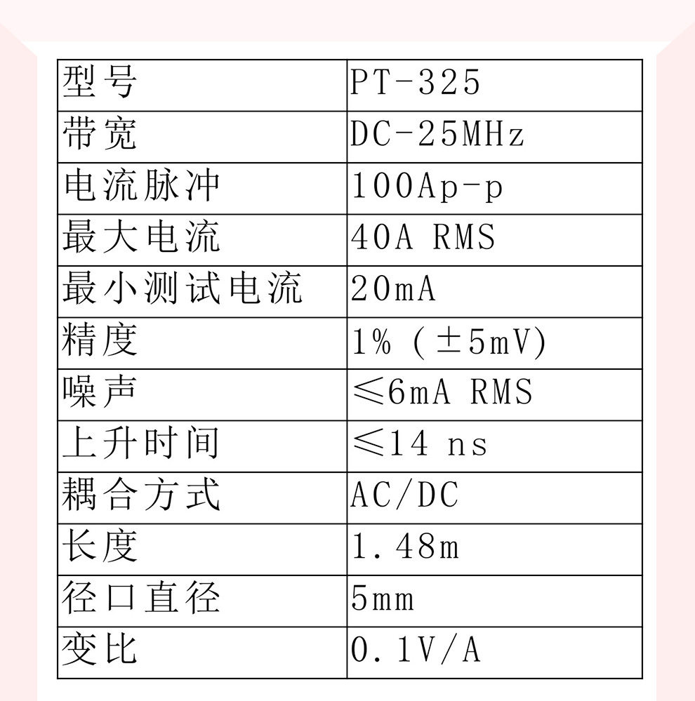 PINTECH High Frequency AC/DC Current Probe PT-325(100A,25MHz) High Precision BNC Interface