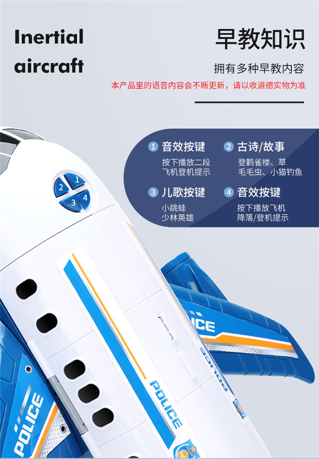 Baolexing children's toys 3-6 years old large size can tell stories airplane simulation passenger plane car model boy birthday gift