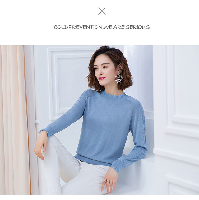 Baosheng 2020 Spring New Women's Clothing New Bottoming Shirt Women's Fashion Sweater Short Pullover Long Sleeve Knitted Bottoming Shirt Trendy JXALSC5160 Black L
