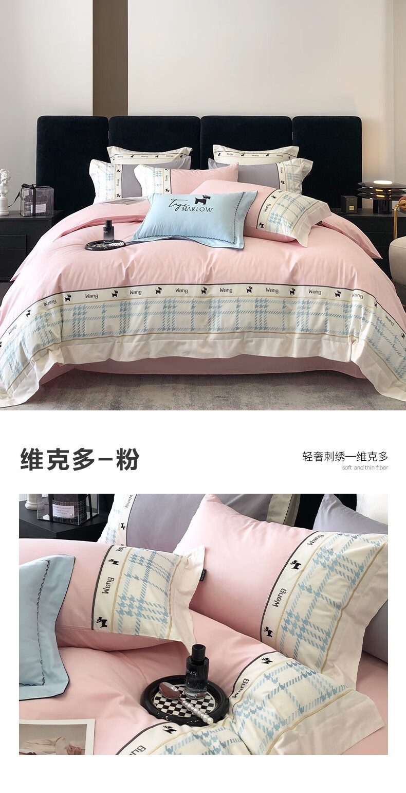 Bedtime Autumn and Winter Light Luxury Cotton Embroidered Four-piece Bedding Set Double Bed Pure Cotton Quilt Cover Sheet Set Victor-Purple 1.5m Bed Four-piece Set (Duvet Cover 200*230cm)