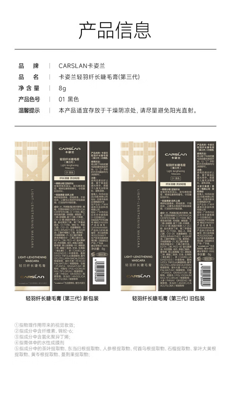 Carslan Light Feather Long Mascara is thick and curling, does not clump and does not smudge, novice friendly 8g birthday gift for girls