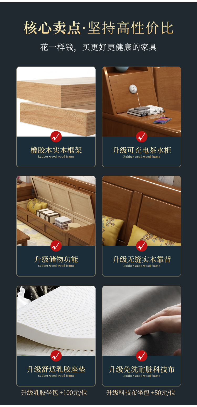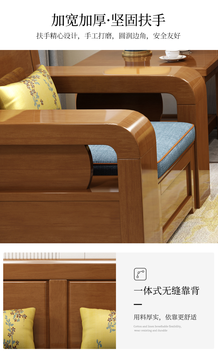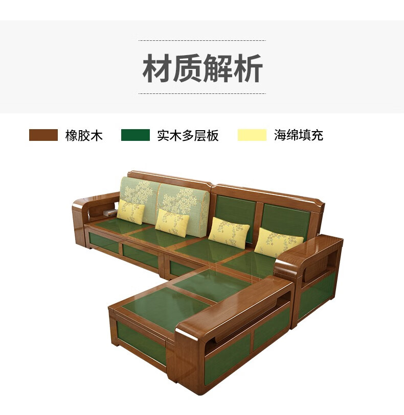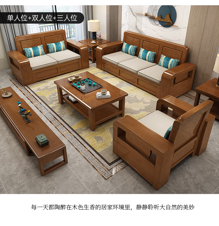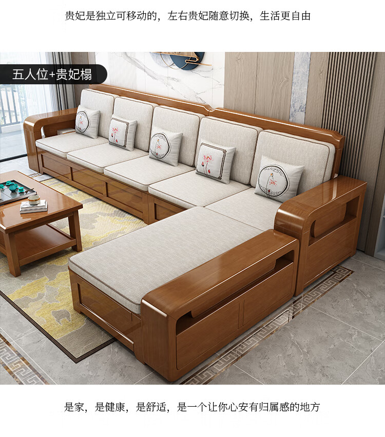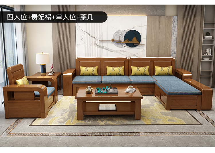 Chijiang solid wood sofa living room complete furniture for winter and summer modern Chinese style small apartment storage solid wood sofa combination five-seater + imperial concubine couch + coffee table