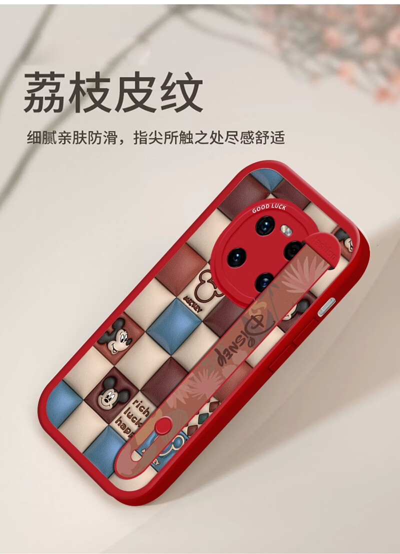 Disney authorized Huawei Mate40 mobile phone case for women new cartoon cute wristband holder integrated lambskin feel anti-fall trendy protective cover black bottom-retro plaid Mickey skin-friendly Huawei Mate40