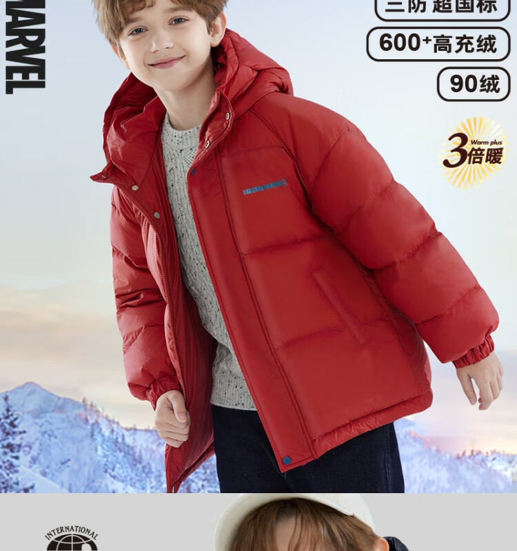 Disney Jungen Daunenjacke Winter Neue Dicke Warme Drei-Proof-Jacke Mittlere und große Kinder Entendaunen Skibekleidung Western-Stil Brotjacke Chinesisches Rot 150 cm