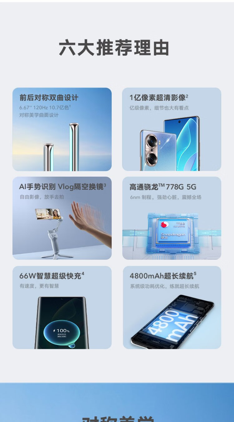 荣耀60 前后双曲设计 1亿像素超清摄影 高通骁龙778G 5G 66W智慧超级快充 全网通版 8GB+256GB 幻境星空