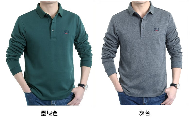 Jeep (JEEP) long-sleeved t-shirt men's 2025 spring and autumn new men's business casual loose cotton large size lapel men's top royal blue XL (recommended 146-160 Jin Jin equals 0.5 kg)