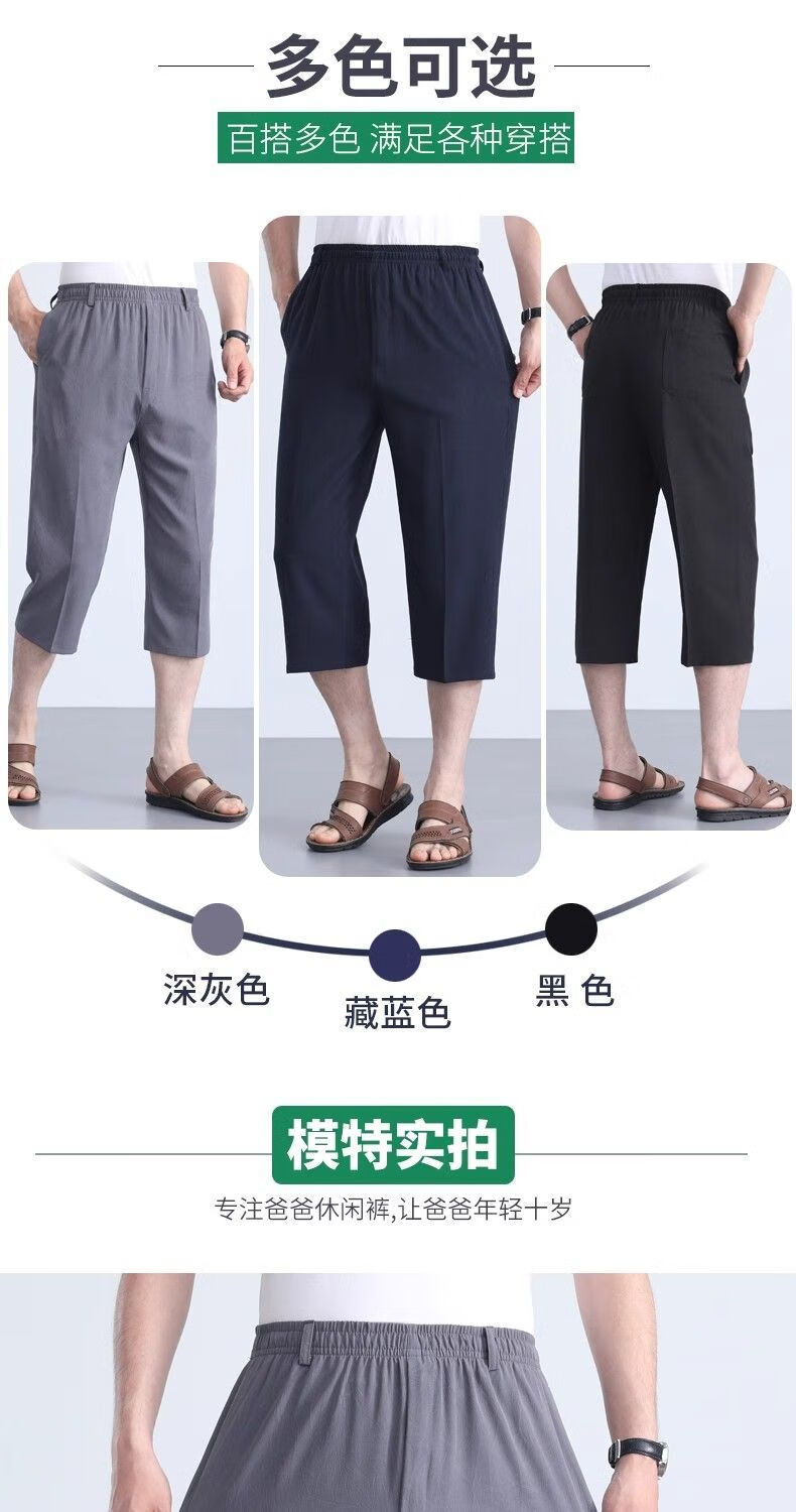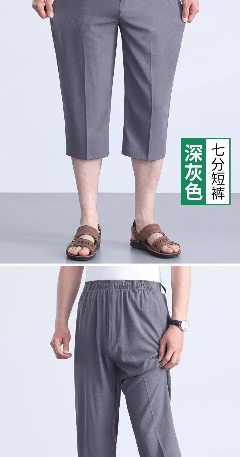 Jinlingcheng summer thin ice silk eight-point men's casual middle-aged and elderly shorts dad's shorts loose deep crotch elastic dark gray 4XL recommended 155-170Jin Jin equals 0.5 kg