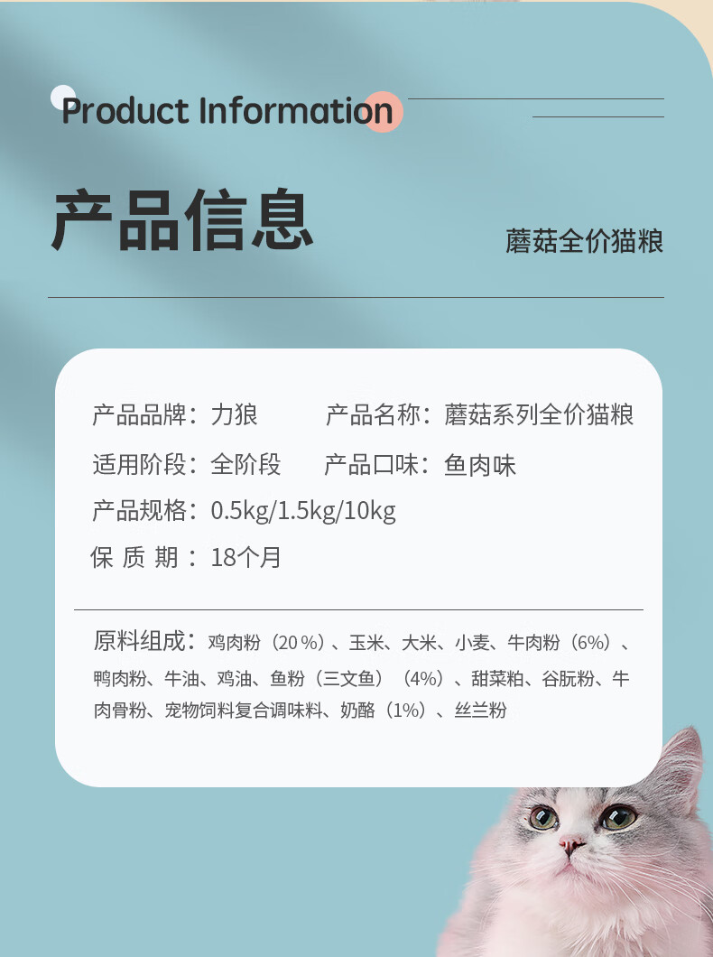Lilang Cat Food General Purpose Blue Cat British Shorthair American Shorthair Mushroom Series Cat Food for Adults and Kittens 10kg