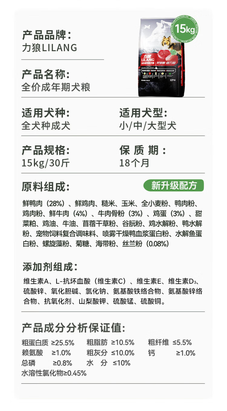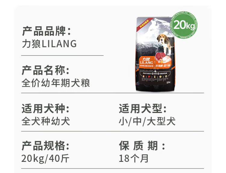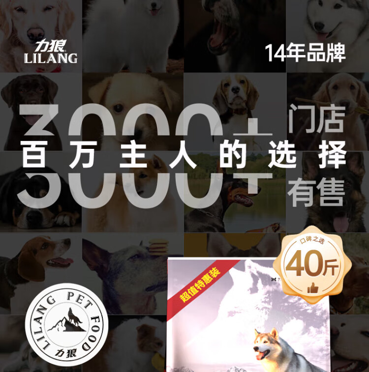Lilang Dog Food Main Food for Medium and Large Dogs Alaskan Golden Retriever Labrador Multipurpose Adult Dog 20kg 40Jin Jin is equal to 0.5kg