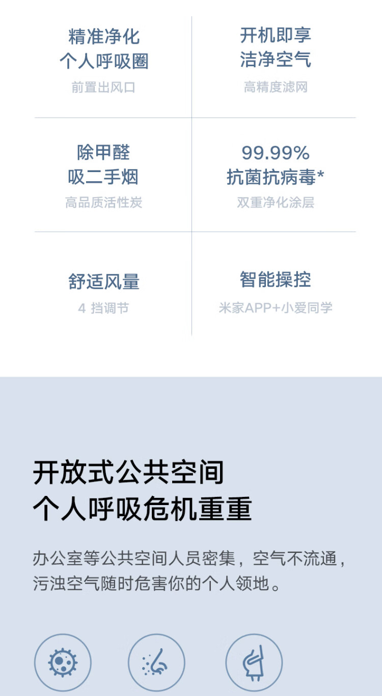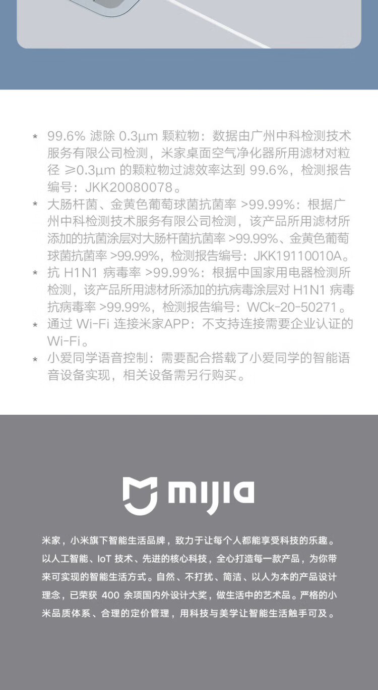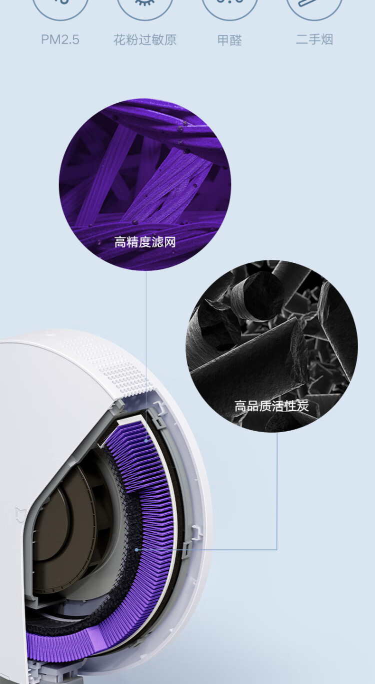 米家小米桌面空气净化器 高精度滤网 双重净化涂层米家APP智能操控AC-M9-SC