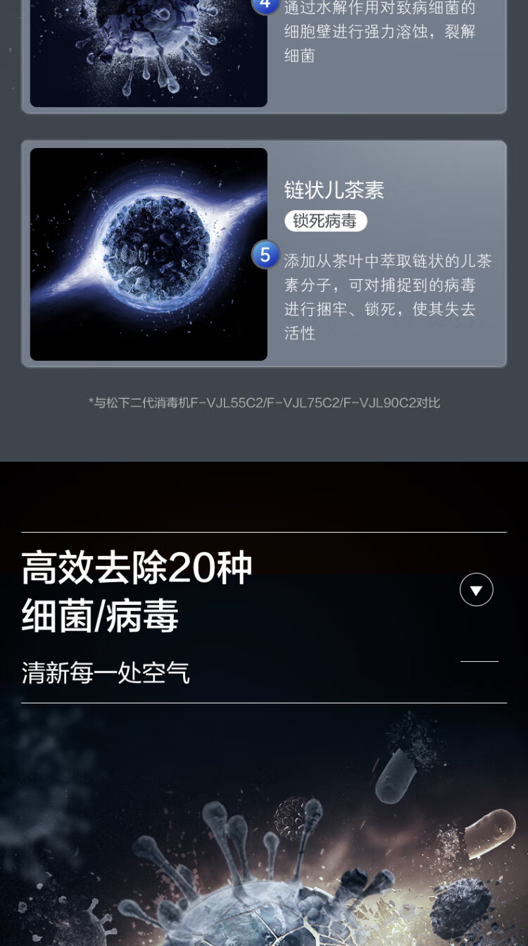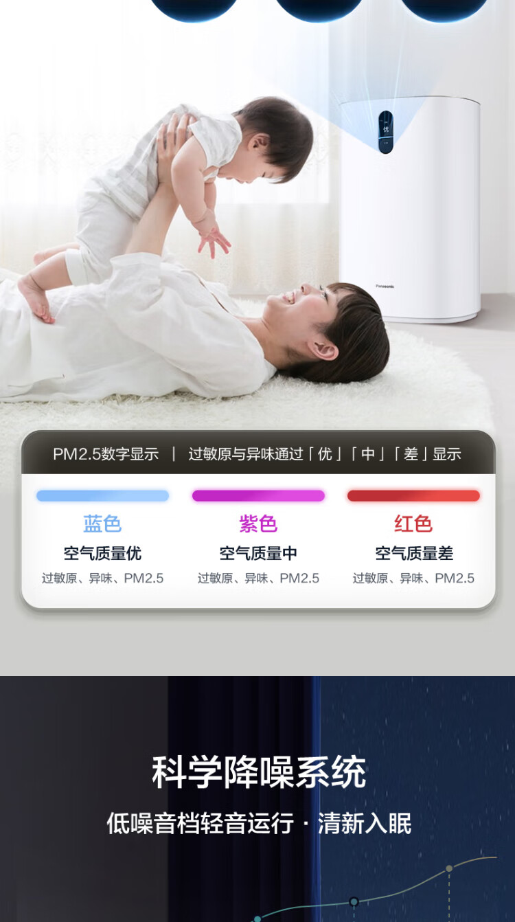 松下(Panasonic)空气净化器 消毒除甲醛净化器F-93C2PJ-W 智能家用宠物除菌除异味除烟味除尘净化去甲醛空气消毒机 【60㎡消毒除醛】智能一体净化器F-93C2PJ