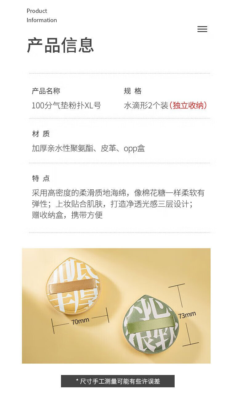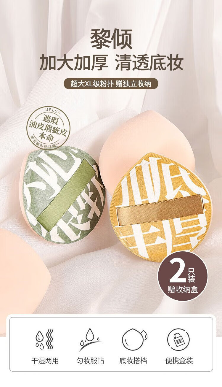 Li Qing Marshmallow Air Cushion Powder Puff Extra Large XL (2 Pack) 100 Points Liquid Foundation Air Cushion Beauty Egg Wet and Dry