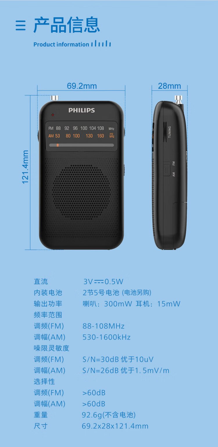 Philips (PHILIPS) TAR1368 radio, semiconductor pointer for the elderly, retro FM pure broadcast small mini portable audio