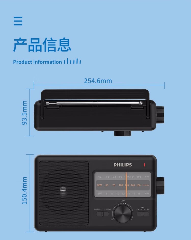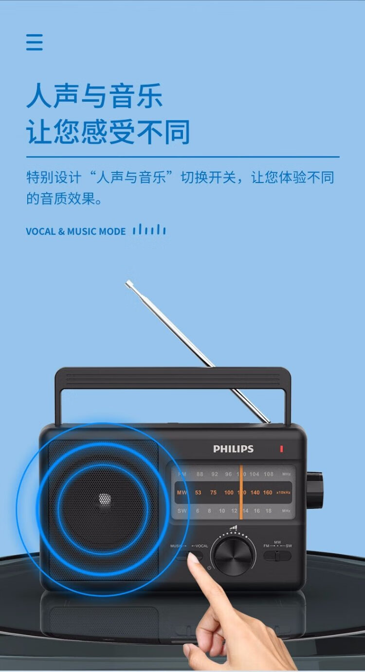 Philips (PHILIPS) TAR2368 Vollbandradio für ältere Menschen, tragbares FM-FM-Halbleiter-Altmodisches Desktop-Radio, Walkman für ältere Menschen, Vollband/Zeiger