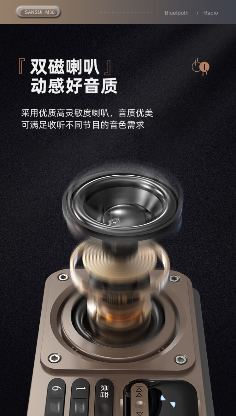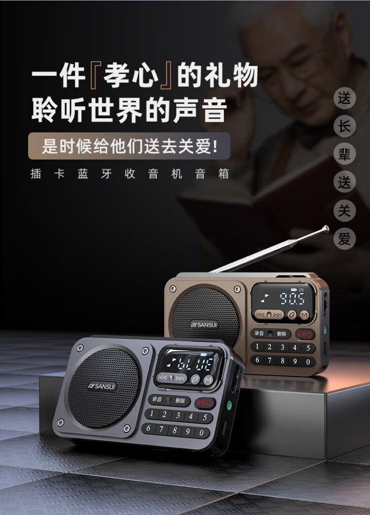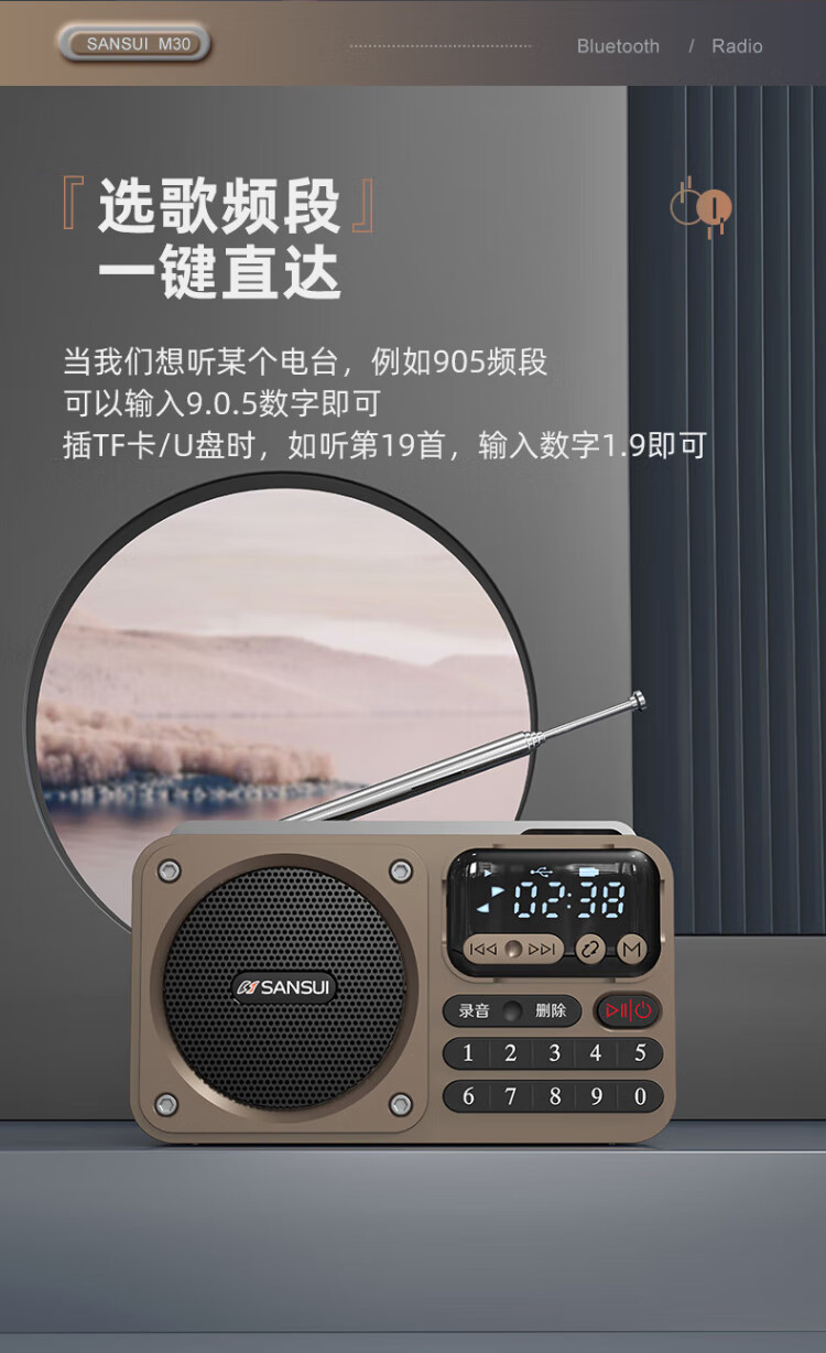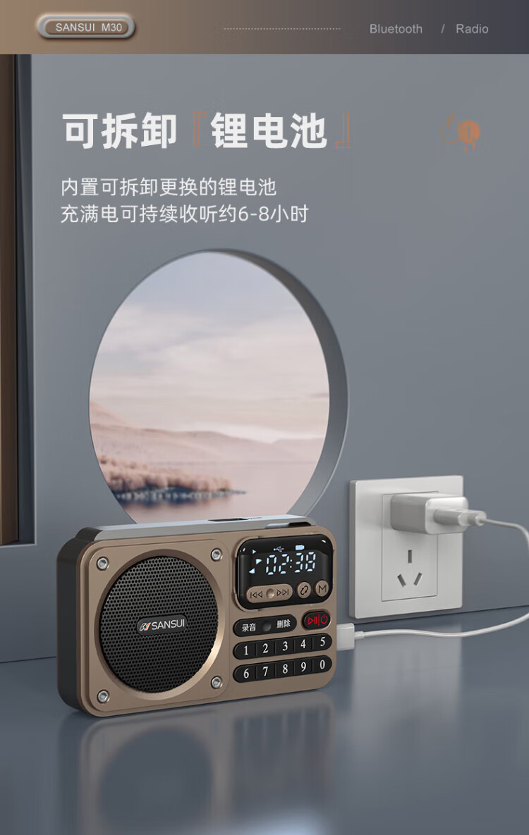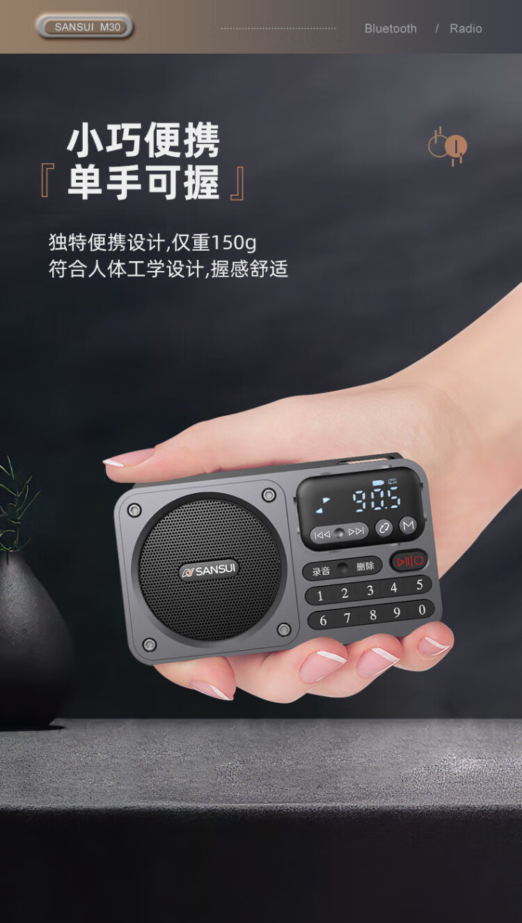山水(SANSUI)M30老人收音机老年人充电插卡音乐播放器迷你小音箱便携式随身听FM调频广播音响蓝牙音箱 灰色