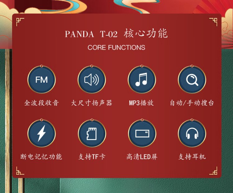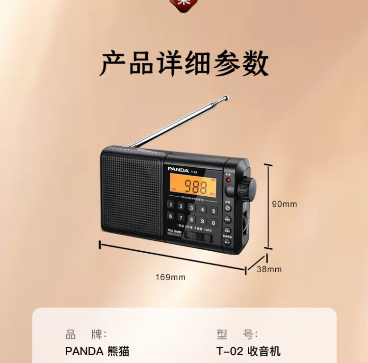 Panda (Panda) T-02 Vollbandradio für ältere Menschen, Steckkarte, TF-Karte, tragbar, altmodisch, wiederaufladbar, Radio, Auto-Backup-Halbleiter (aktualisierte Version)