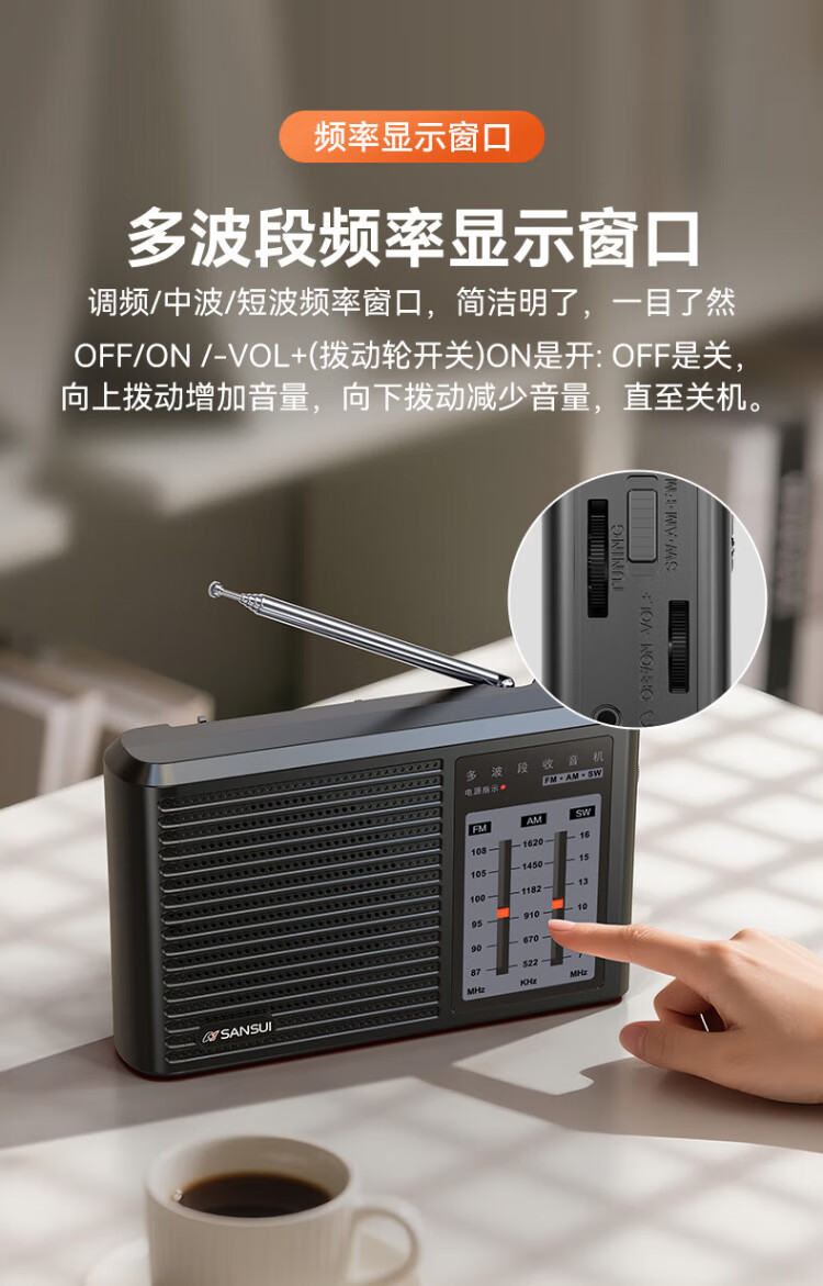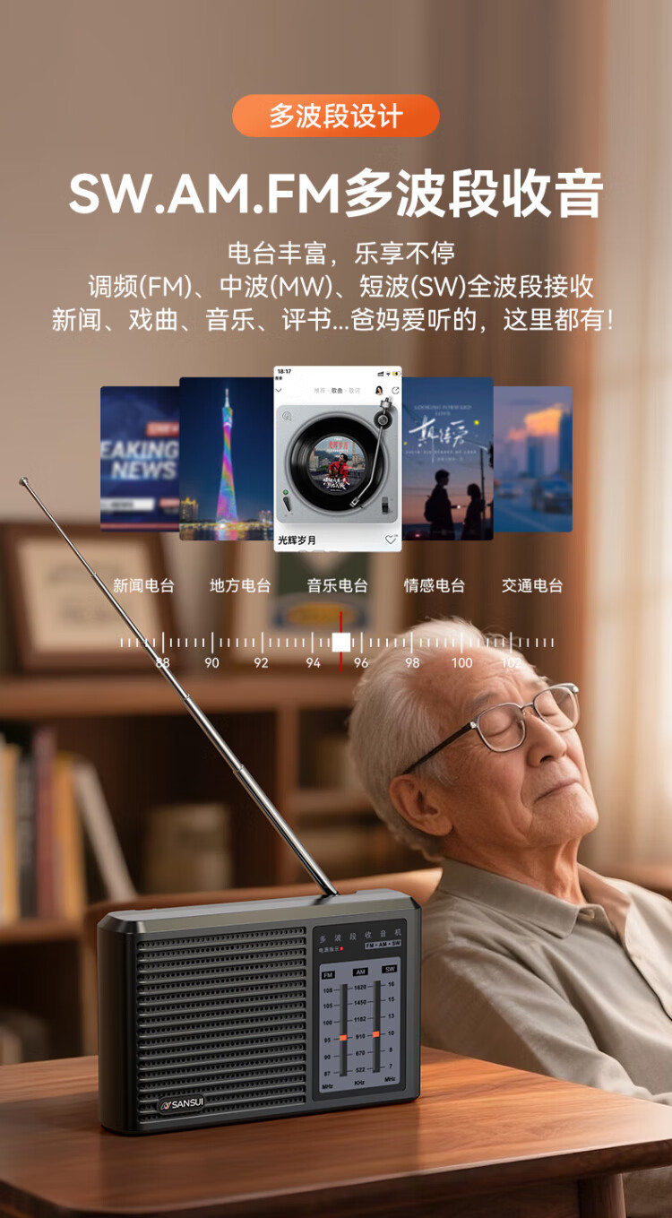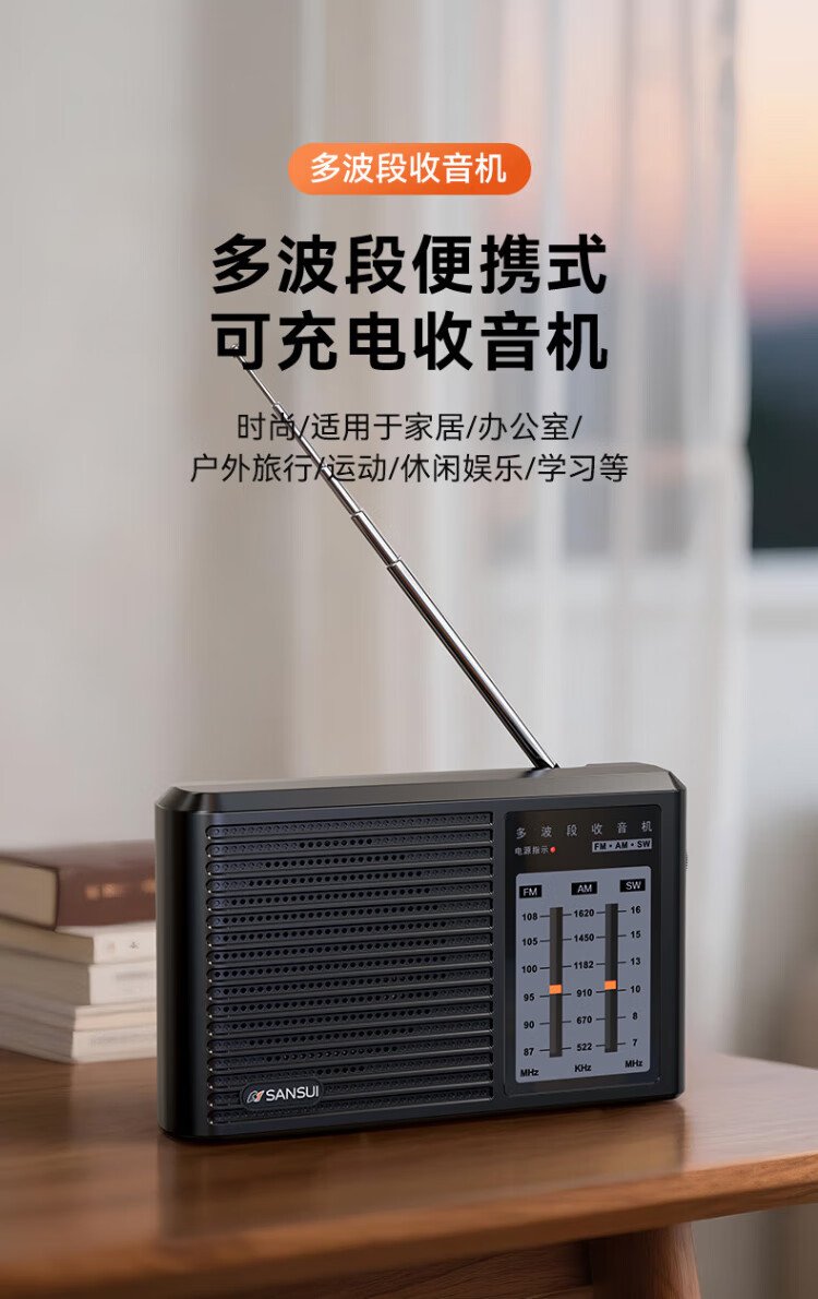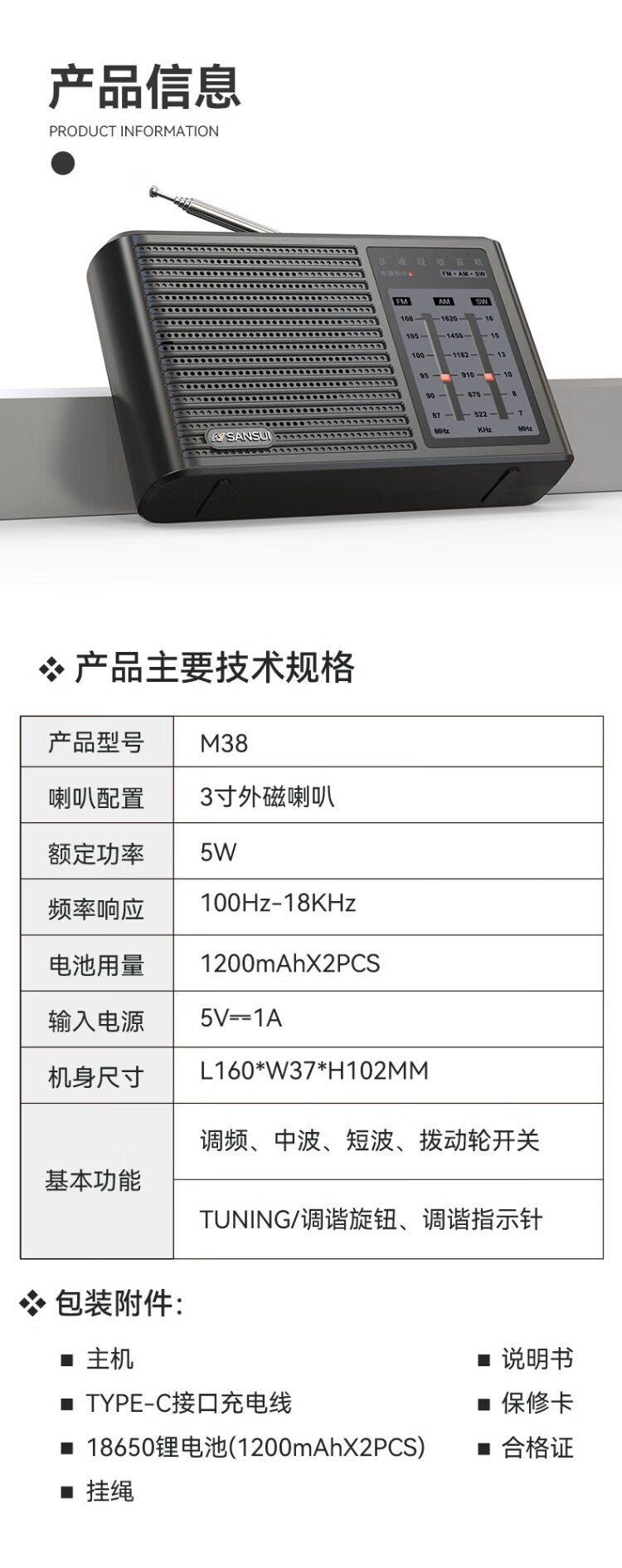 山水(SANSUI)M38全波段老人收音机老年人充电迷你小音箱便携式随身听FM调频广播音响