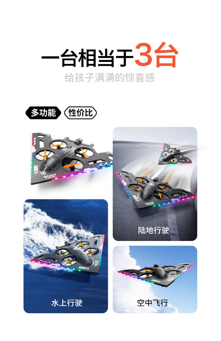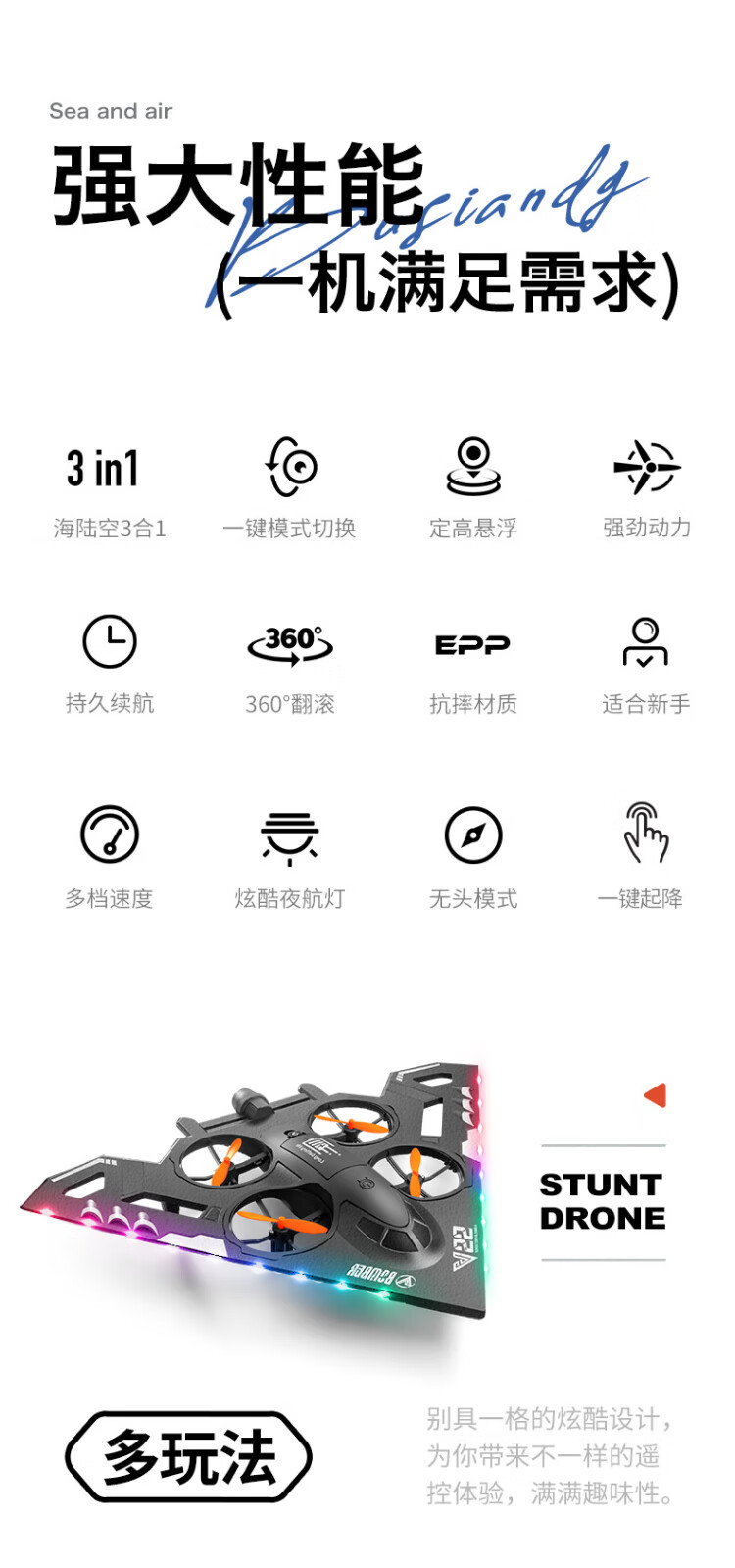 Julai drone sea, land and air children's remote control aircraft remote control car remote control boat toy male model aircraft boy birthday gift