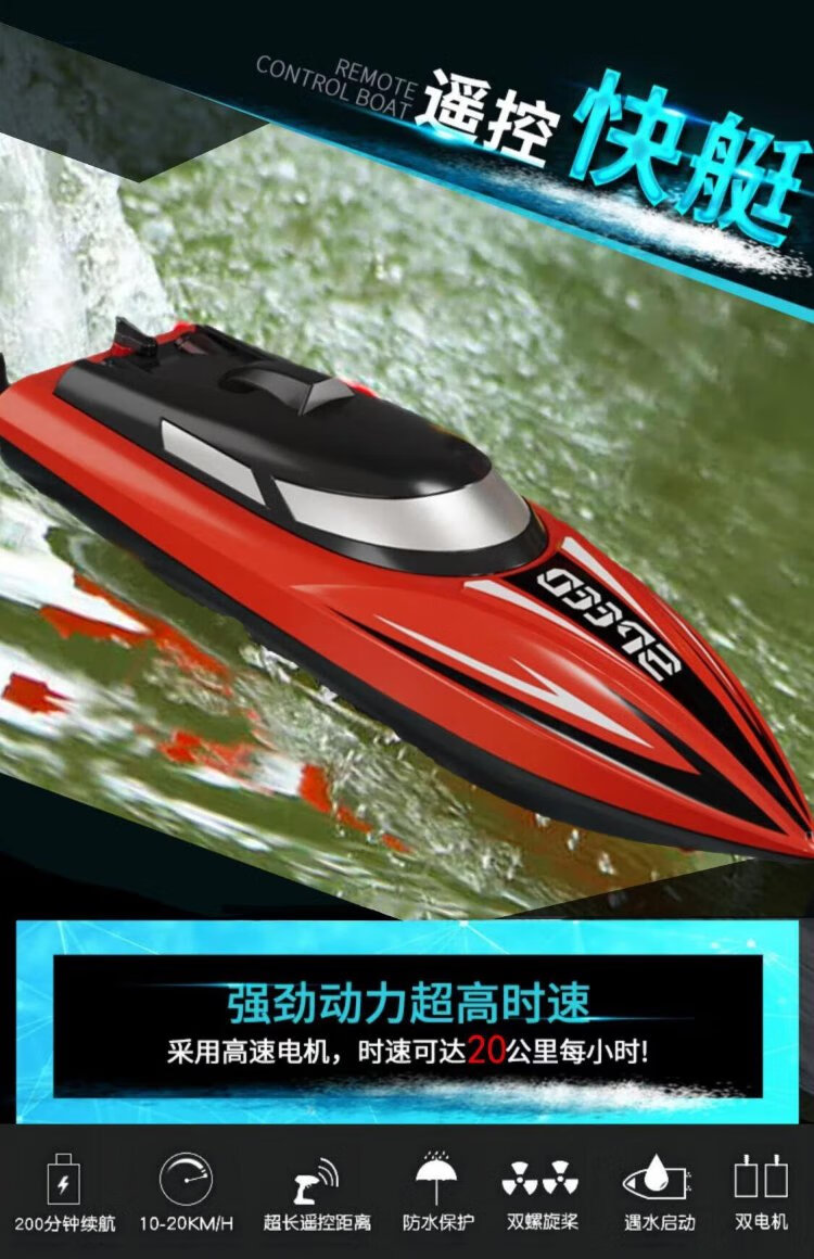 Qiwang Electric Remote Control Boat Speedboat Toy Submarine Remote Control Boat Model Aircraft Carrier High Power Pull Net Water Children 25cm Upgraded Model with a Battery Life of 100 Minutes Default