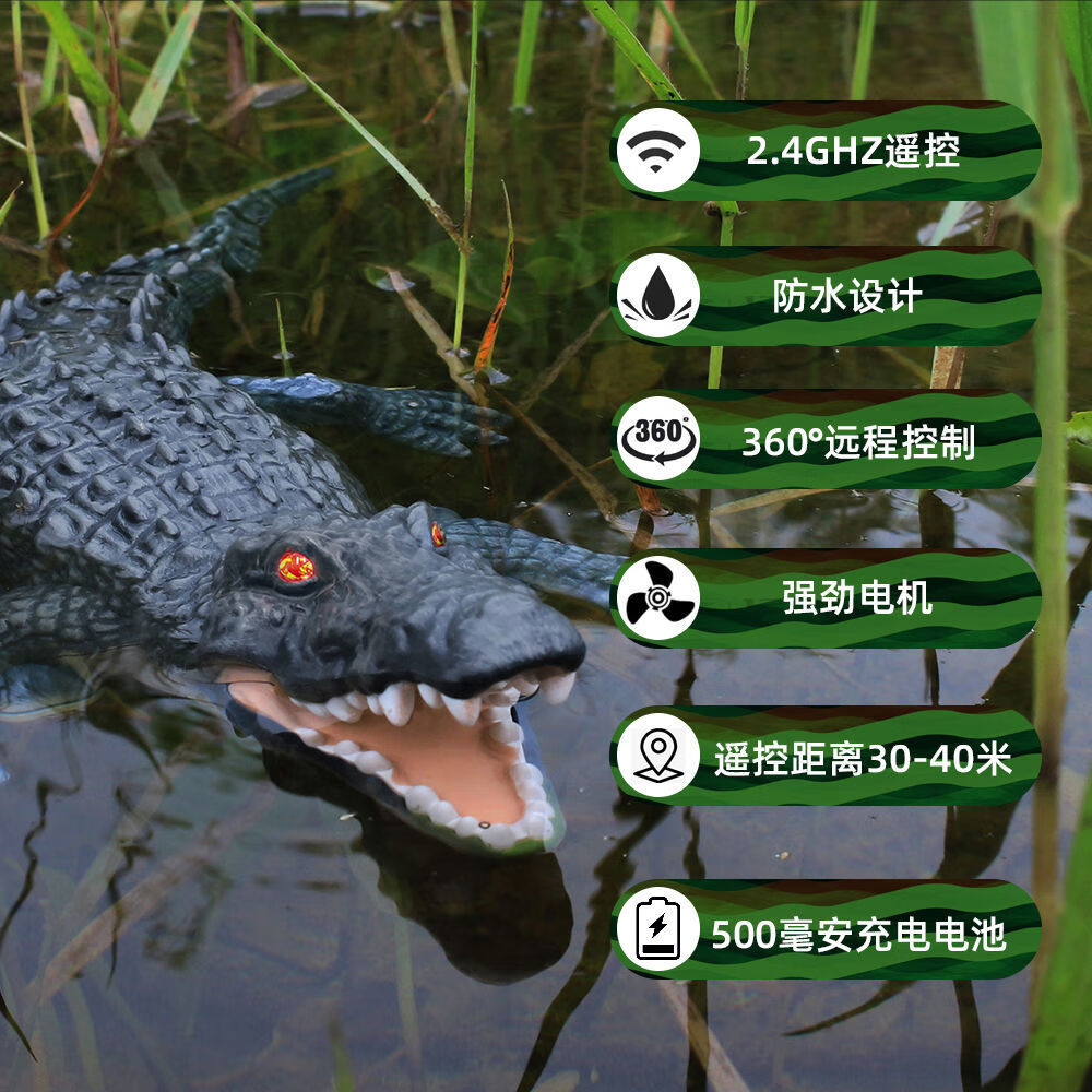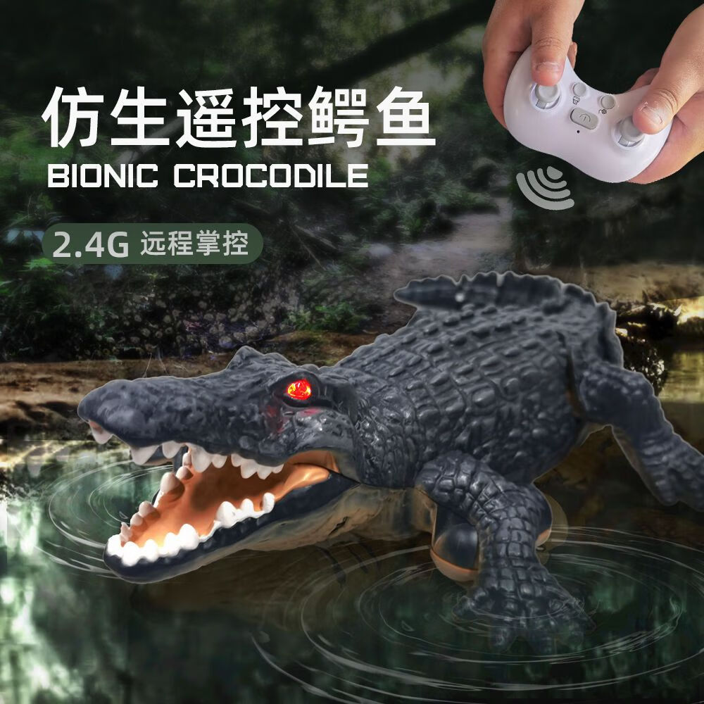Bionic remote control crocodile water reptile electric boat charging speed boat summer outdoor children's toy black technology remote control manta ray standard +2 batteries