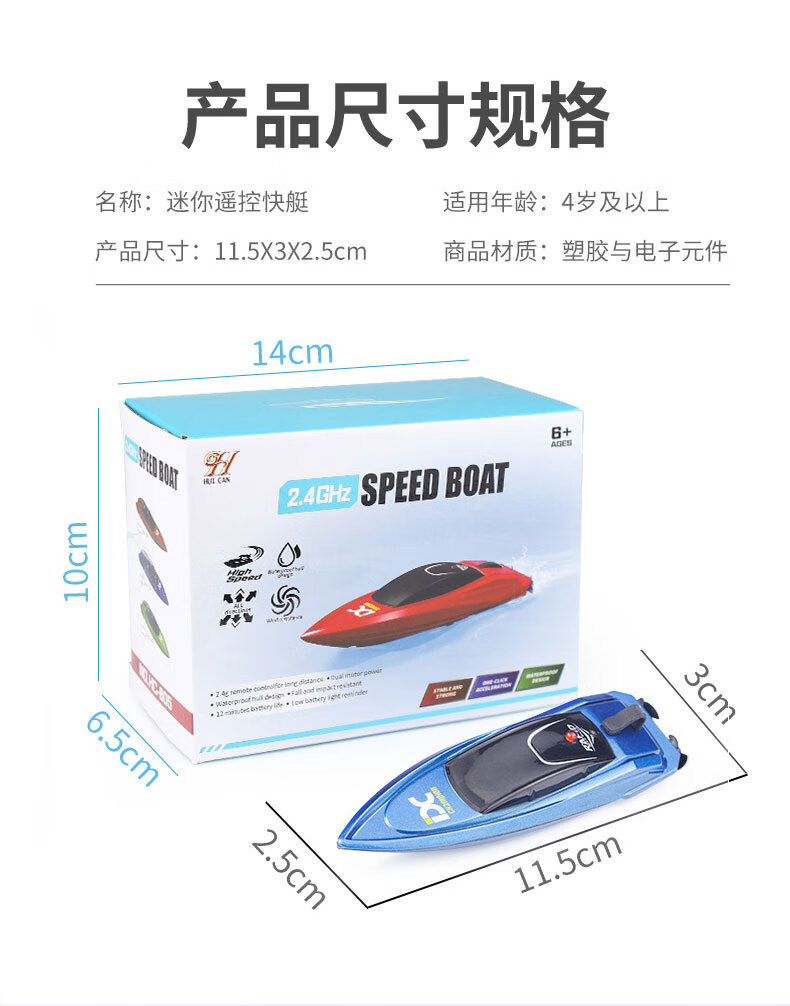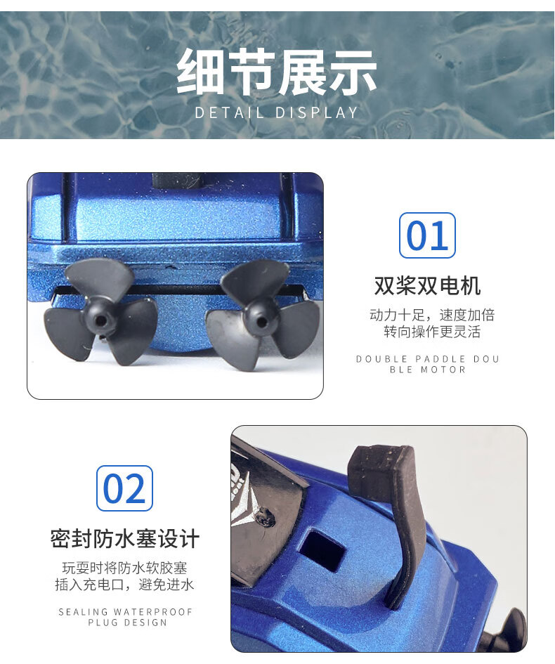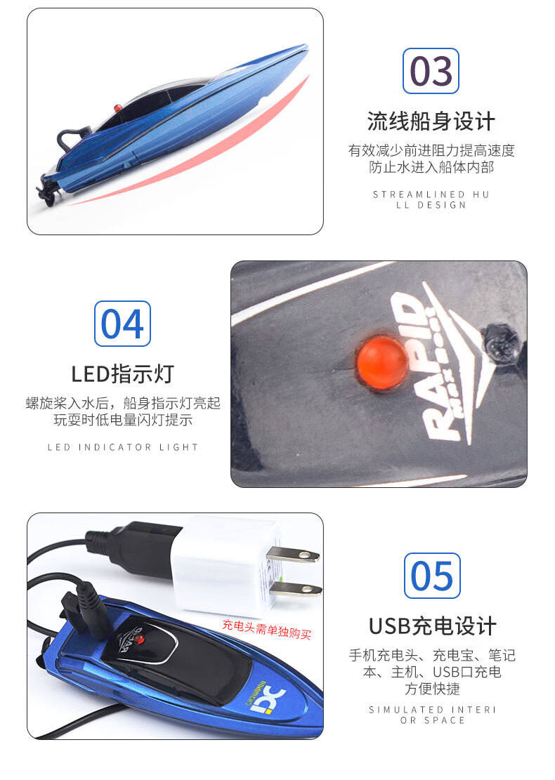 Blue color and 2.4G mini remote control speedboat children's rechargeable waterproof high-speed competitive boat for boys and girls black technology yacht toy Peacock blue mini tumbling speedboat top version air cushion pump + remote control AA battery 3