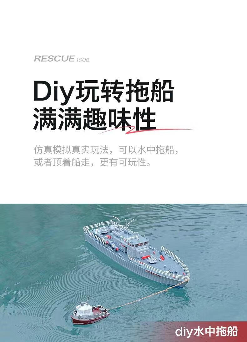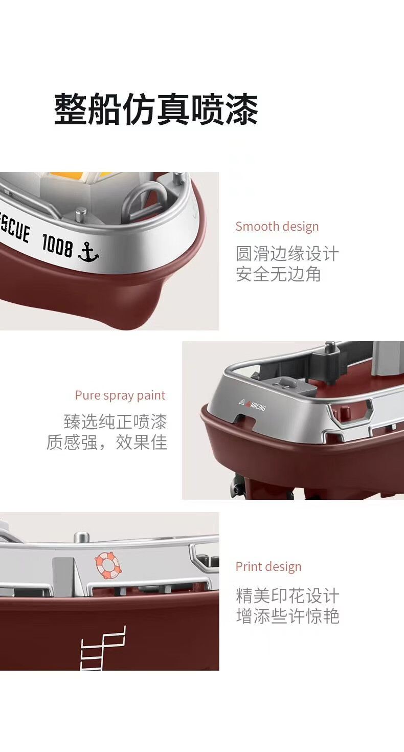 Blue color and mini remote-controlled tugboat for children to play in the water, electric high-speed ship, children's water simulation toy boat model, remote-controlled tugboat with adjustable speed + light + waterproof design