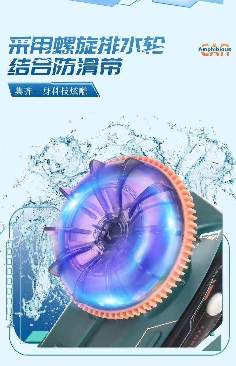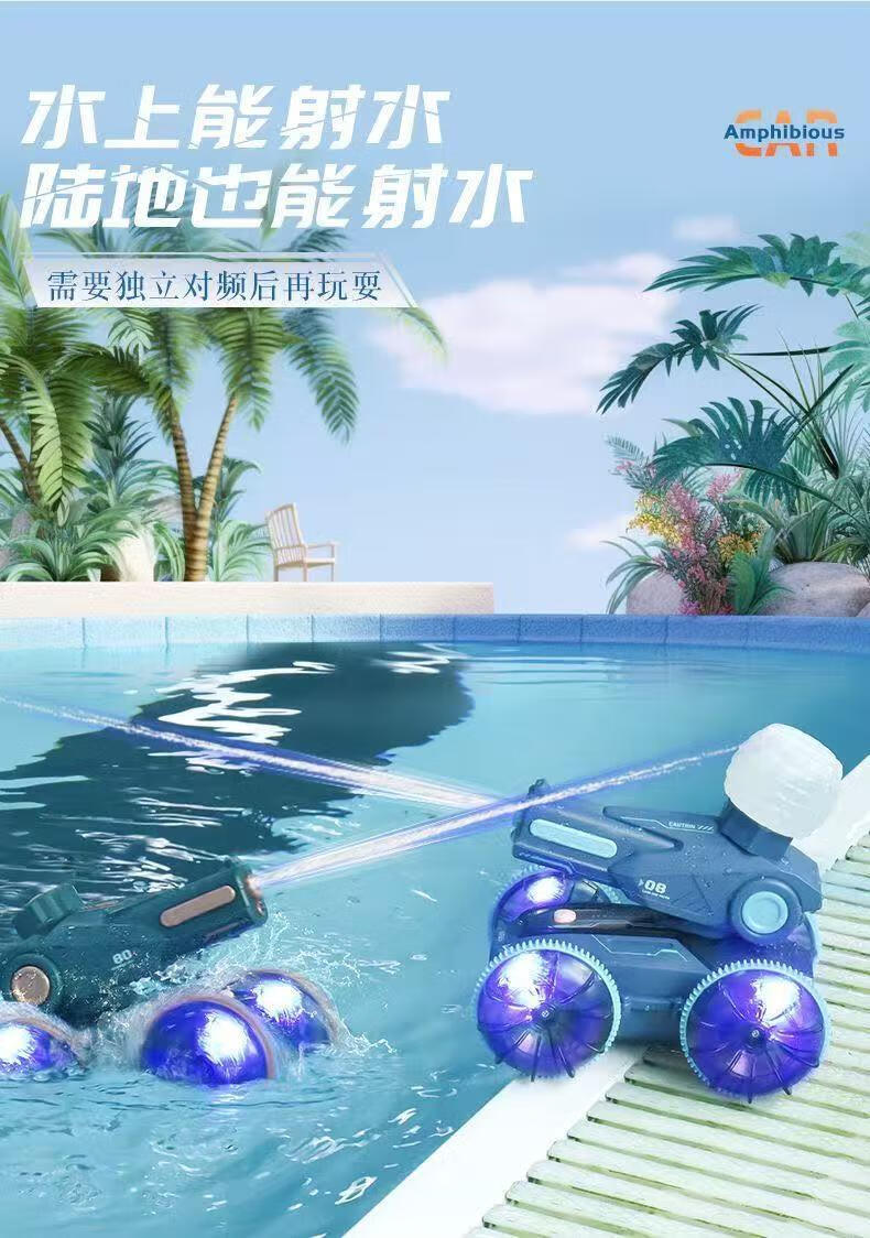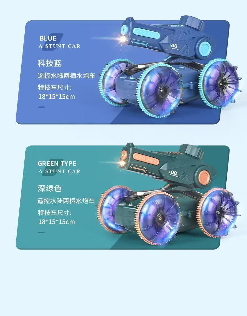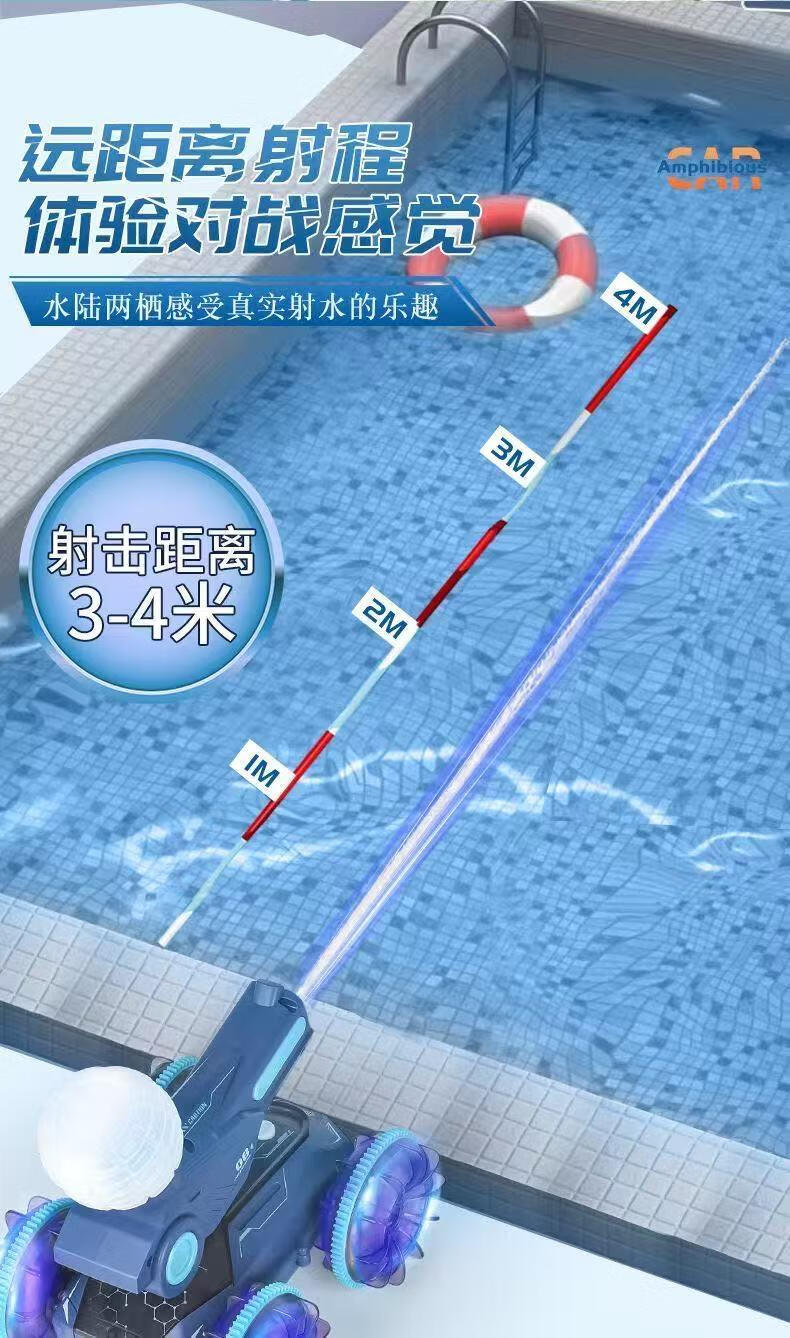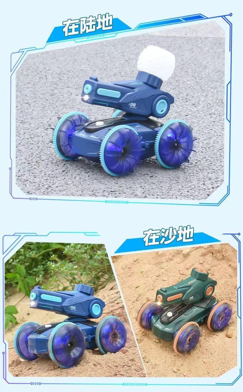 Children's amphibious remote control car tank boat can launch water spray automatic water gun gesture sensor car toy blue amphibious water cannon car without watch Sanden play for about 90 minutes