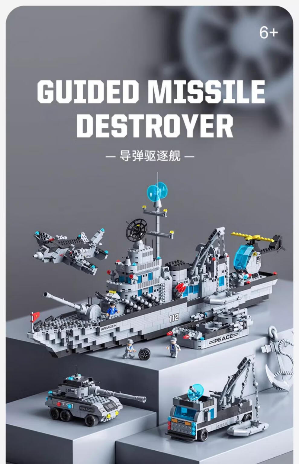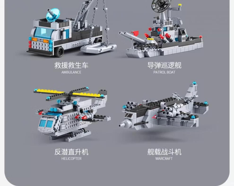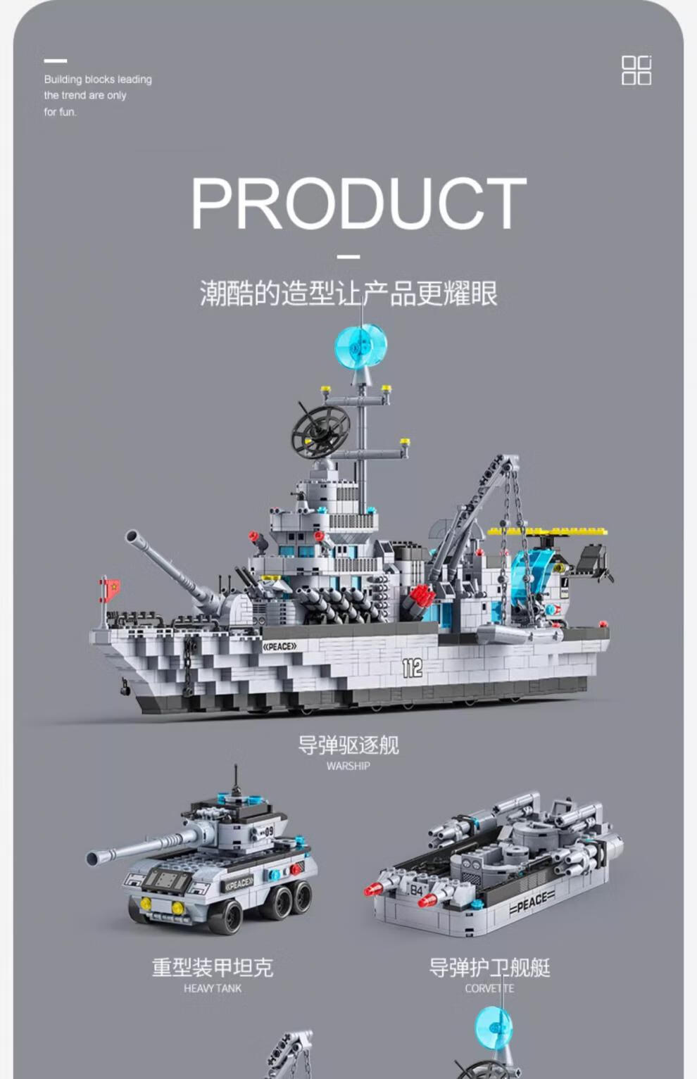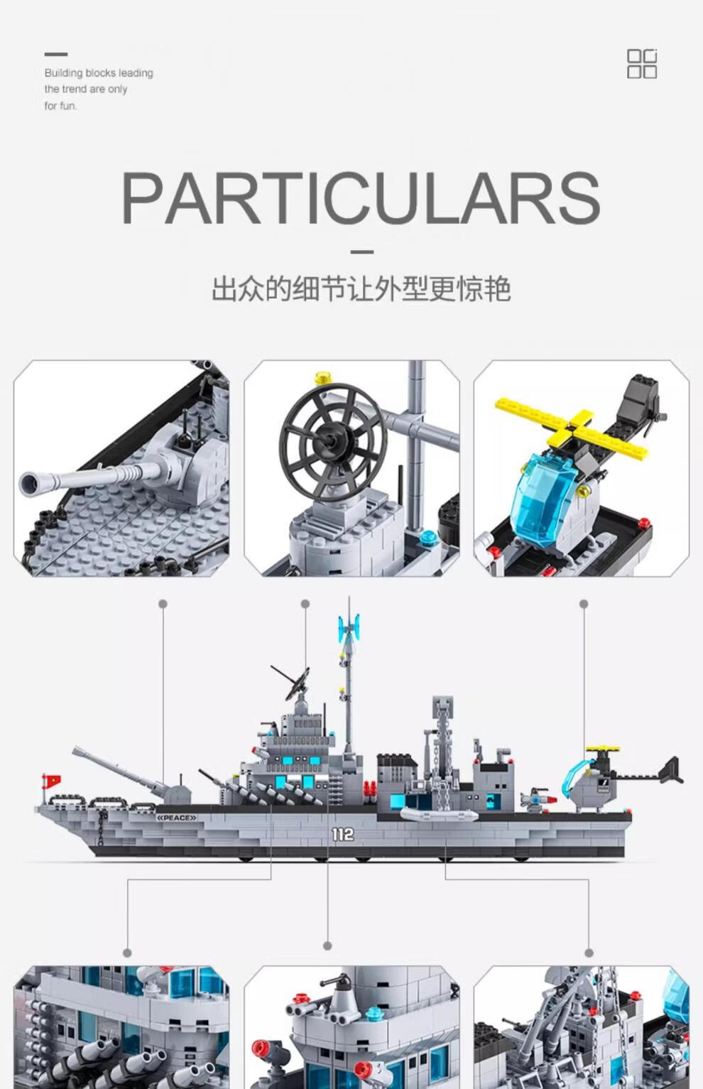 Large aircraft carrier aircraft carrier building blocks assembled toys for boys warship children 112 battleship tanks and aircraft whole ship remote control lights/112 battleships/3 navy 15 flying