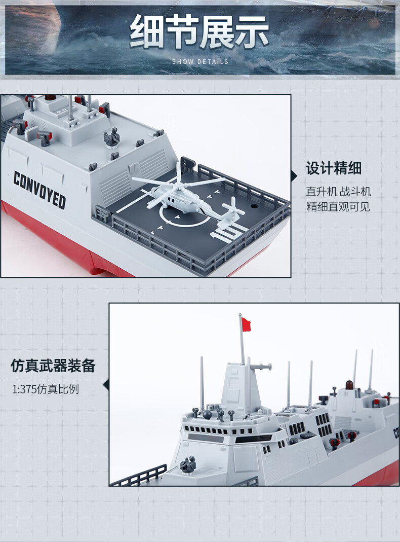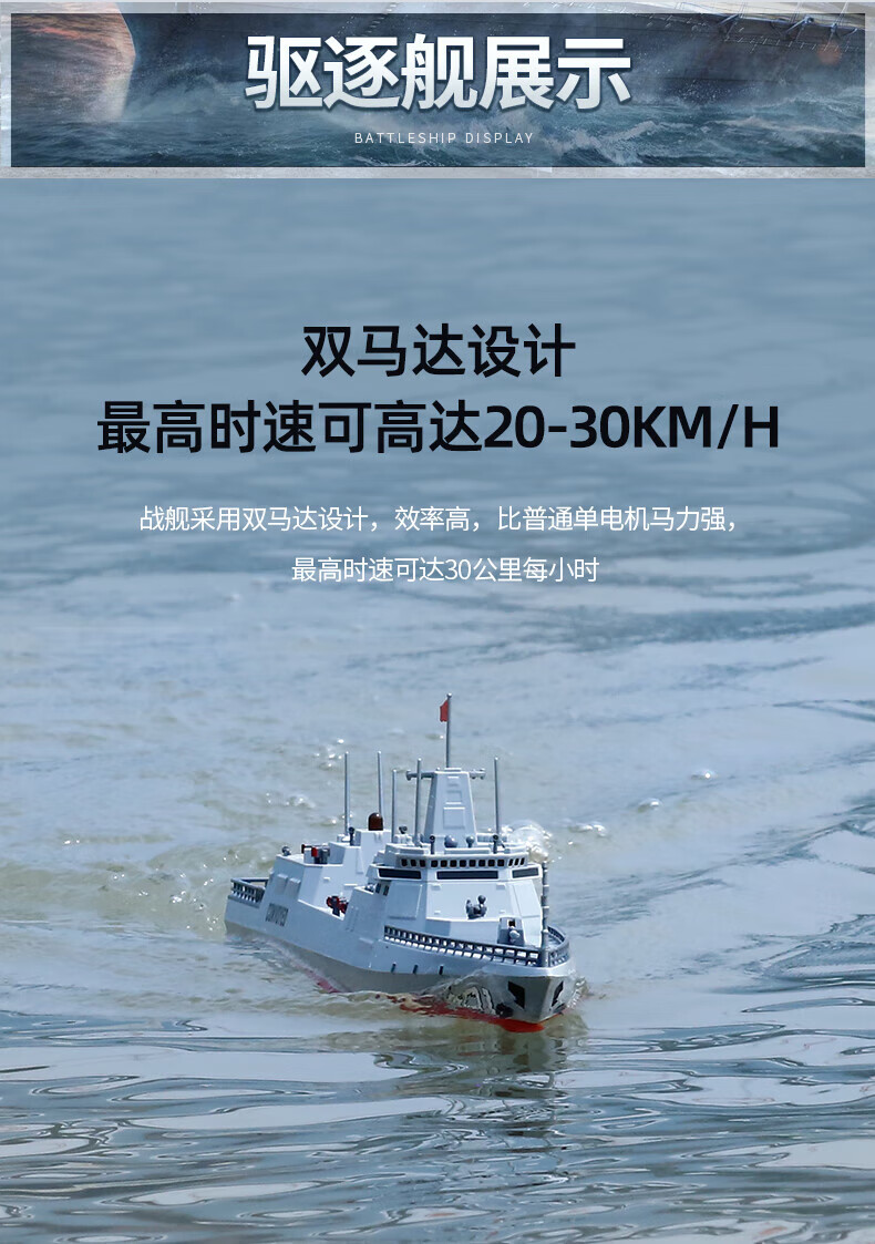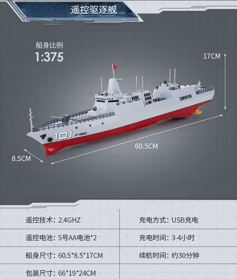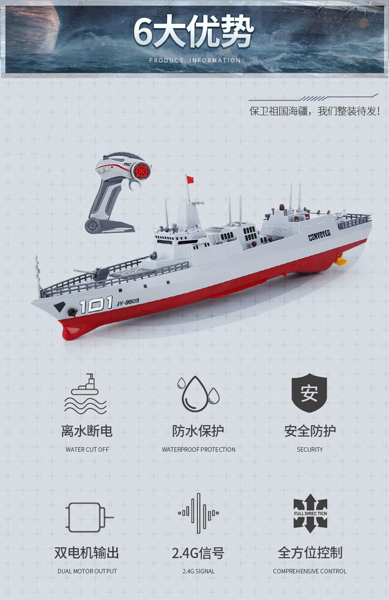 Yunya can launch remote control battleship, water remote control ship Nanchang simulated destroyer military model electric toy, 60cm remote control destroyer can launch