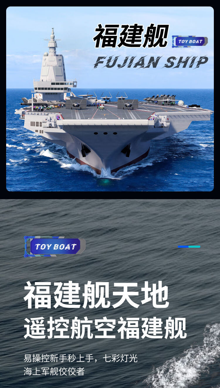 Large remote control aircraft carrier can be launched into the water to simulate the Fujian warship warship military lighting electric toy boat Remote control aircraft carrier Fujian ship can be launched into the water lighting version One battery lasts for 50 minutes