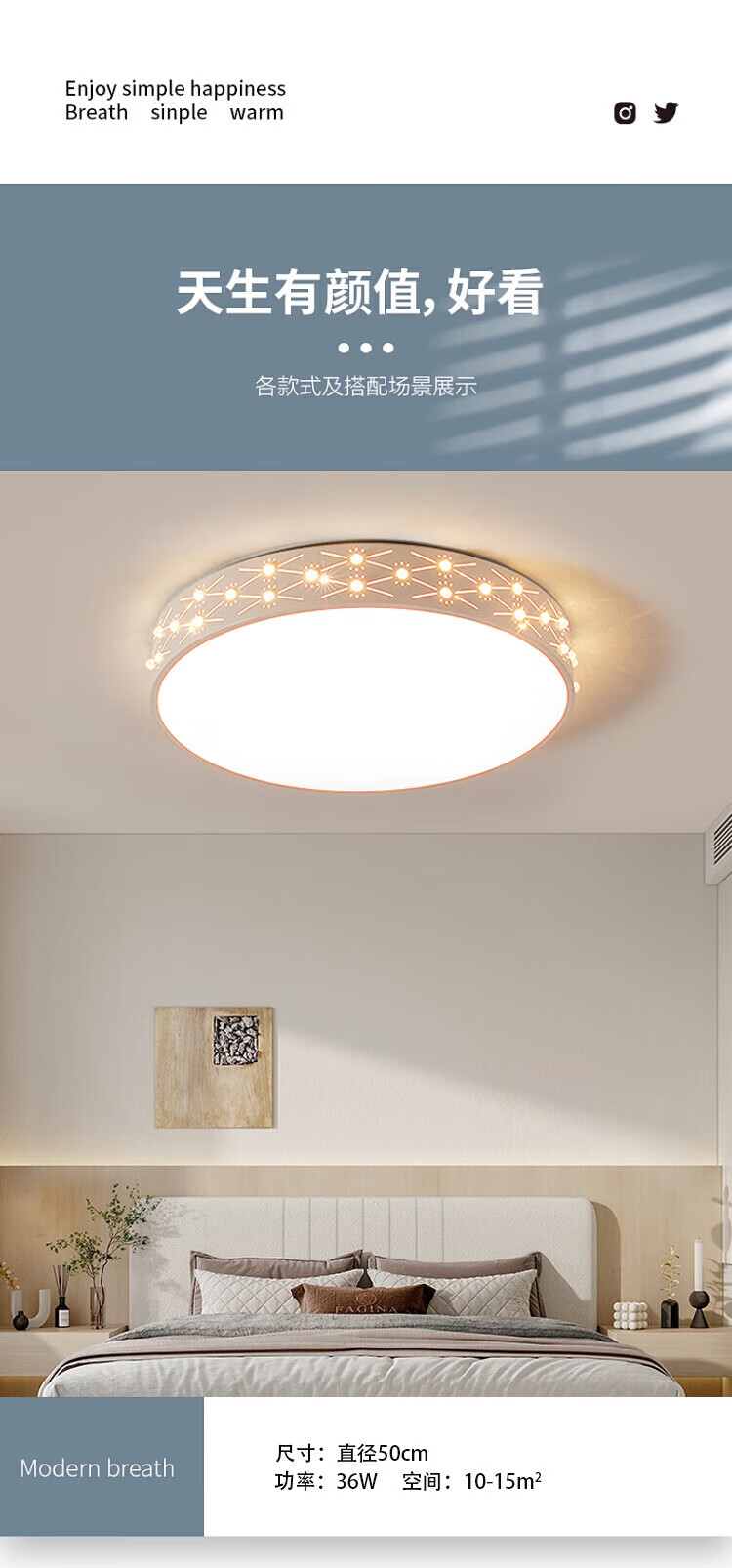YA ZIZILN OPRI official master bedroom lamp 2025 living room LED ceiling lamp children's room lamp Zhongshan lamp full spectrum spaceship-60 square cm three colors