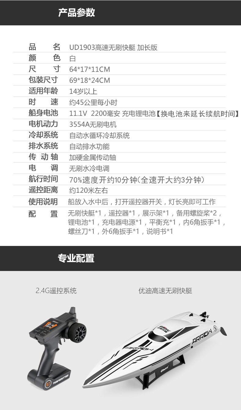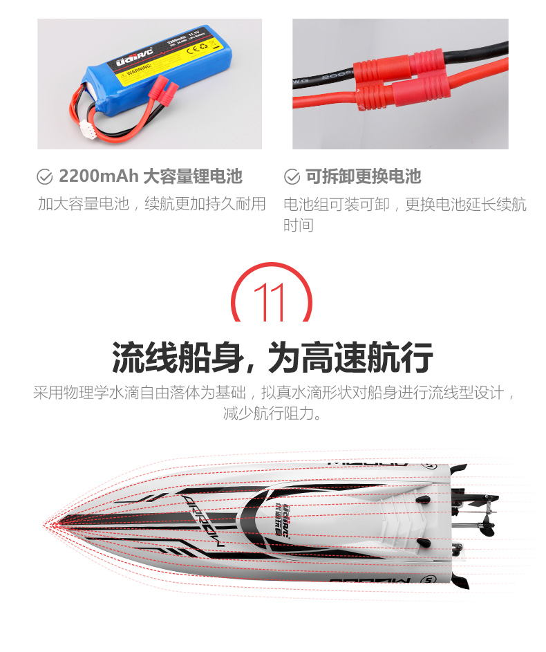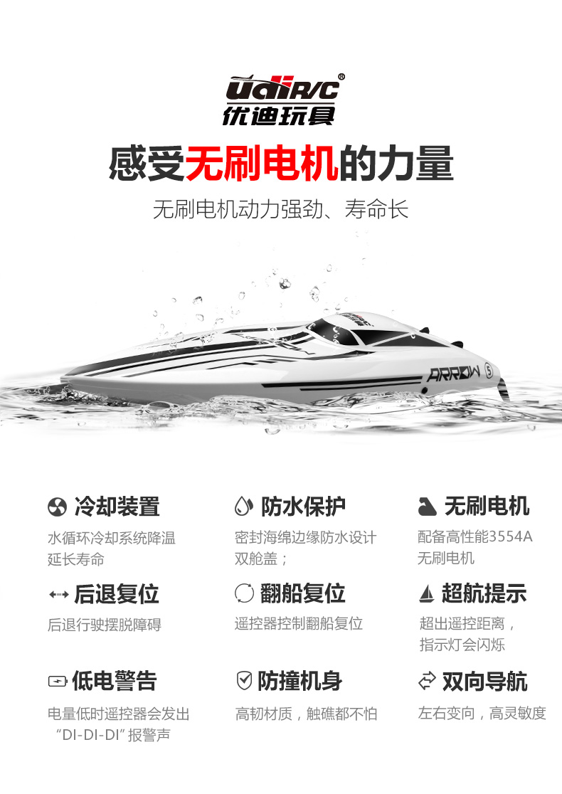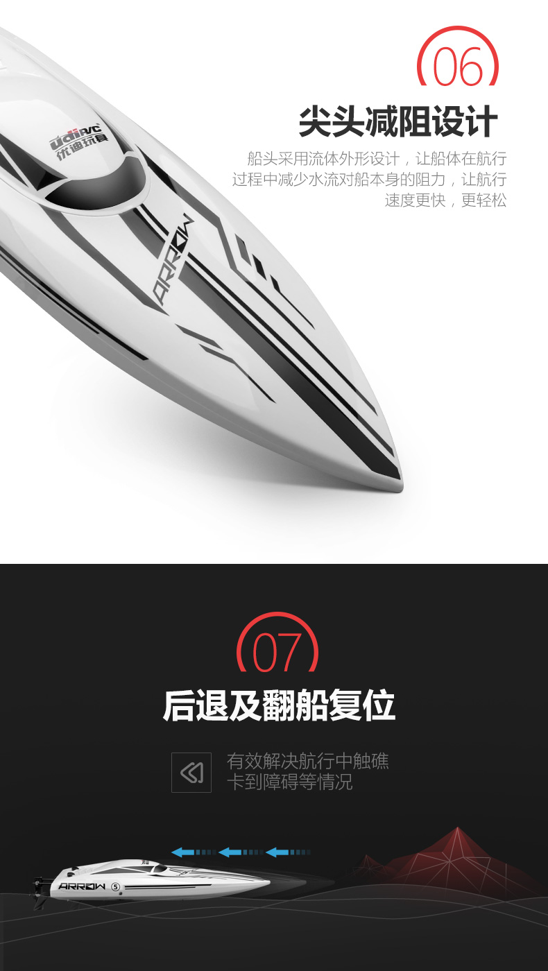 UdiR/C Udi 903 brushless remote control boat high-speed speedboat outdoor water electric boat model RC professional rowing boat 903 red-4 electric