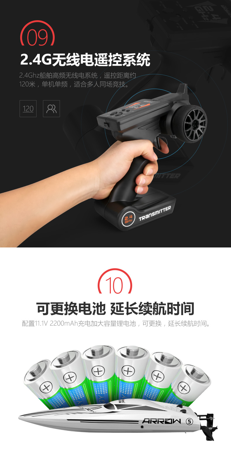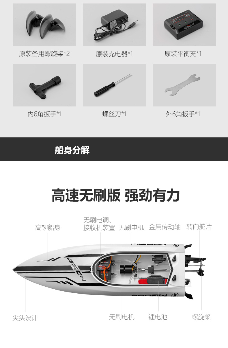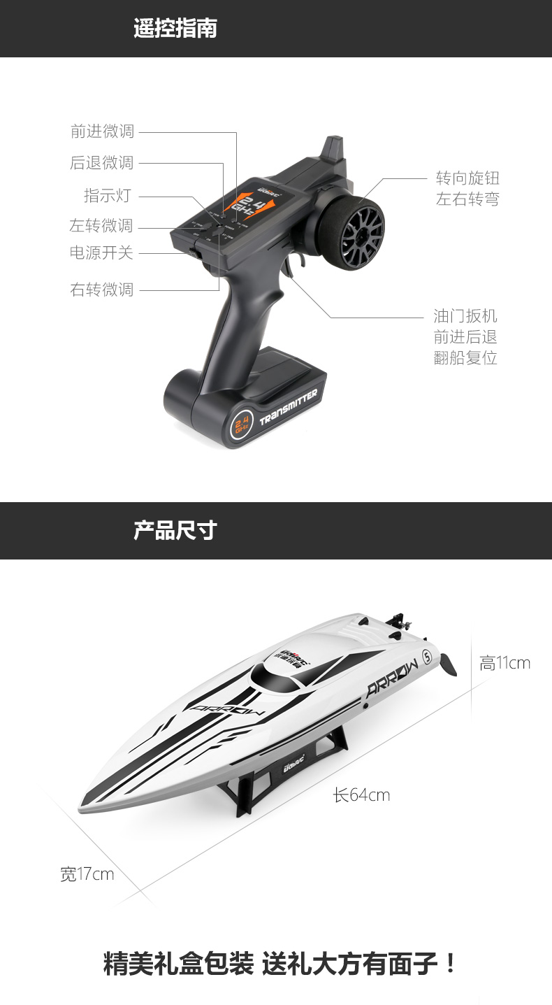 UdiR/C Udi 903 brushless remote control boat high-speed speedboat outdoor water electric boat model RC professional rowing boat 903 red-4 electric