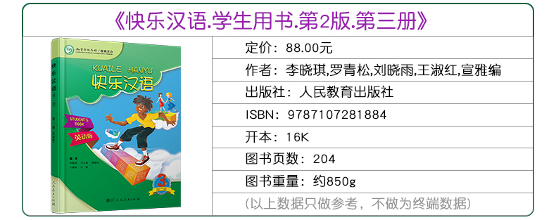 快乐汉语第三册学生用书 英语版第二版 Kuaile Hanyu Student's Book 外国人学中文零基础标准教程HSK3对外汉语水平考试初级级三