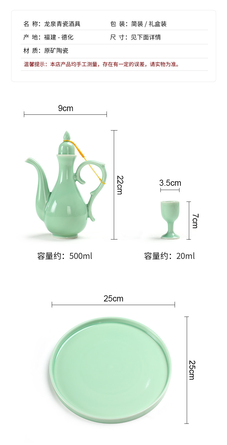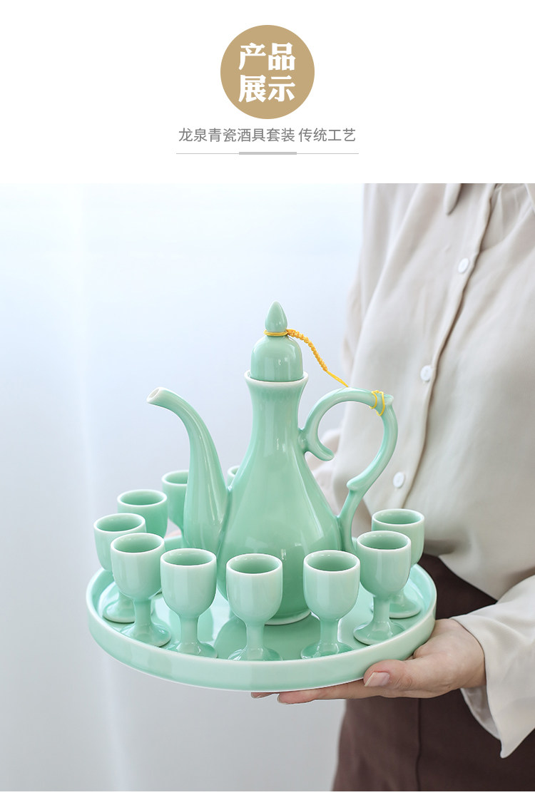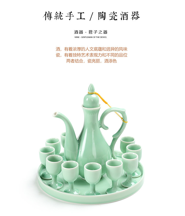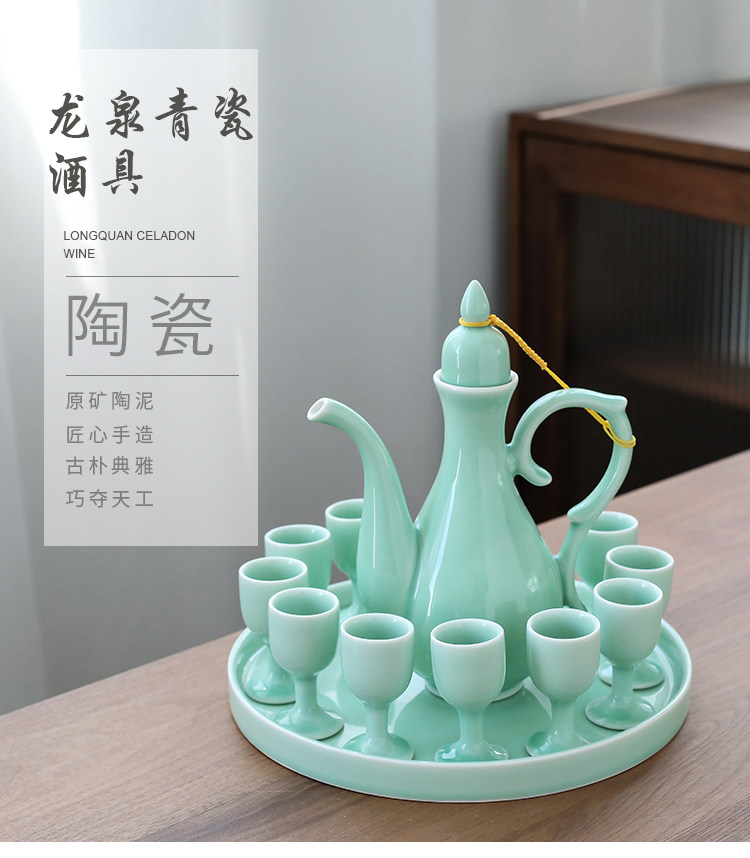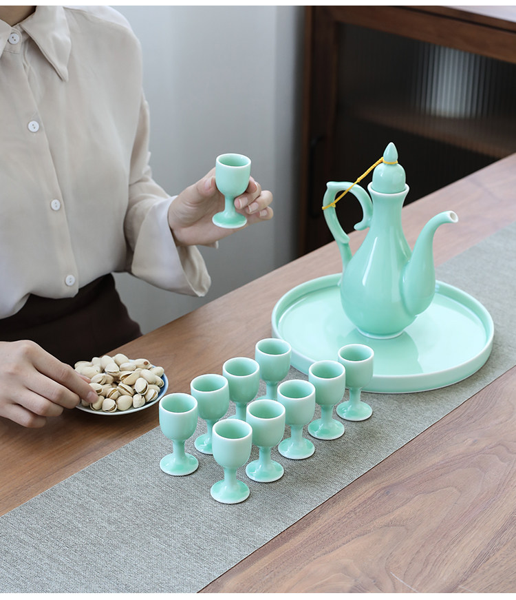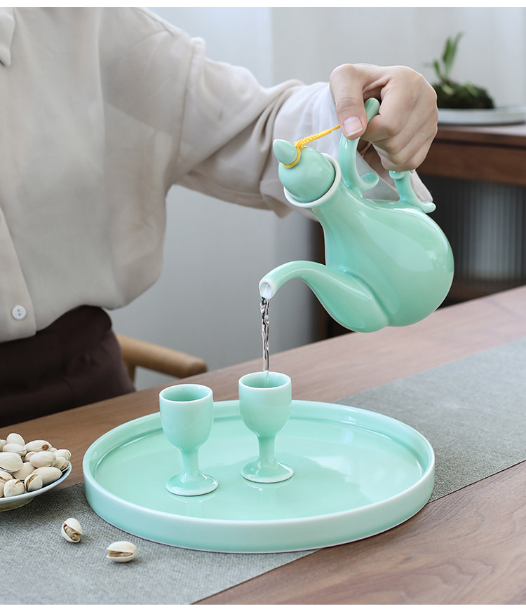 Chinesisches Seladon-Weinset, Palast-Keramik-Weinteiler, Haushaltsweinbecher, antiker warmer Weinkrug, weißer Toastbecher mit hohem Fuß