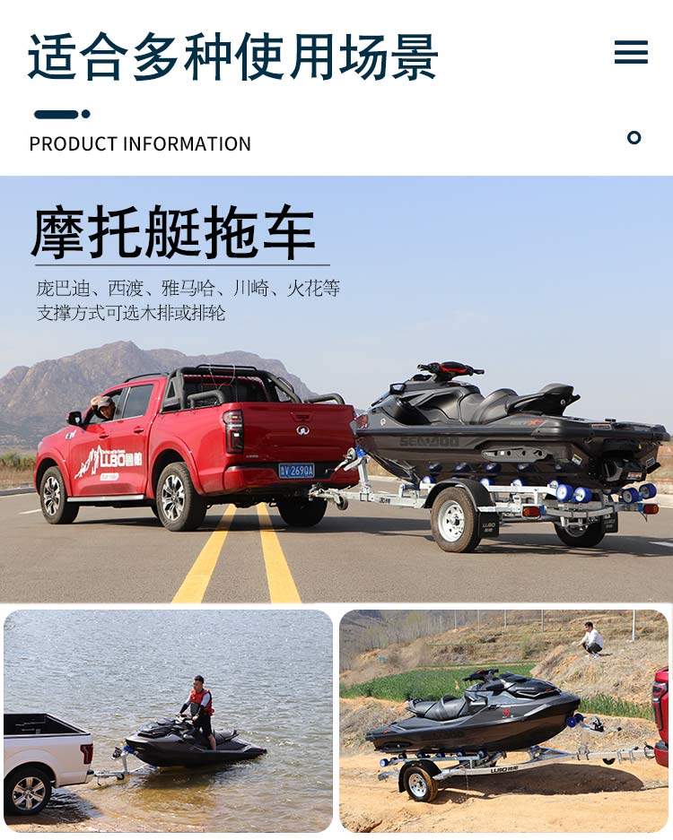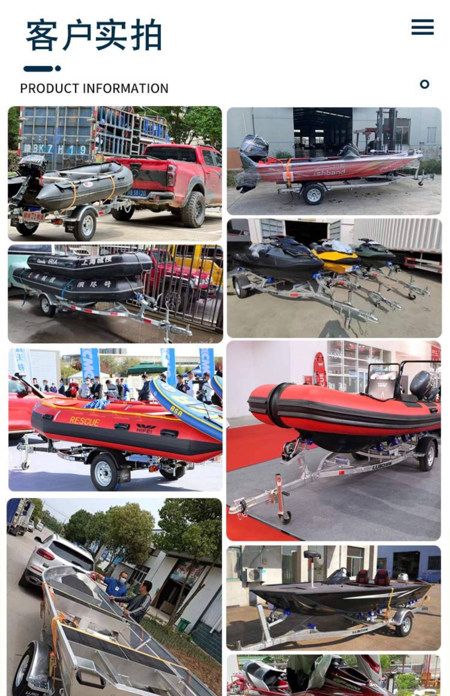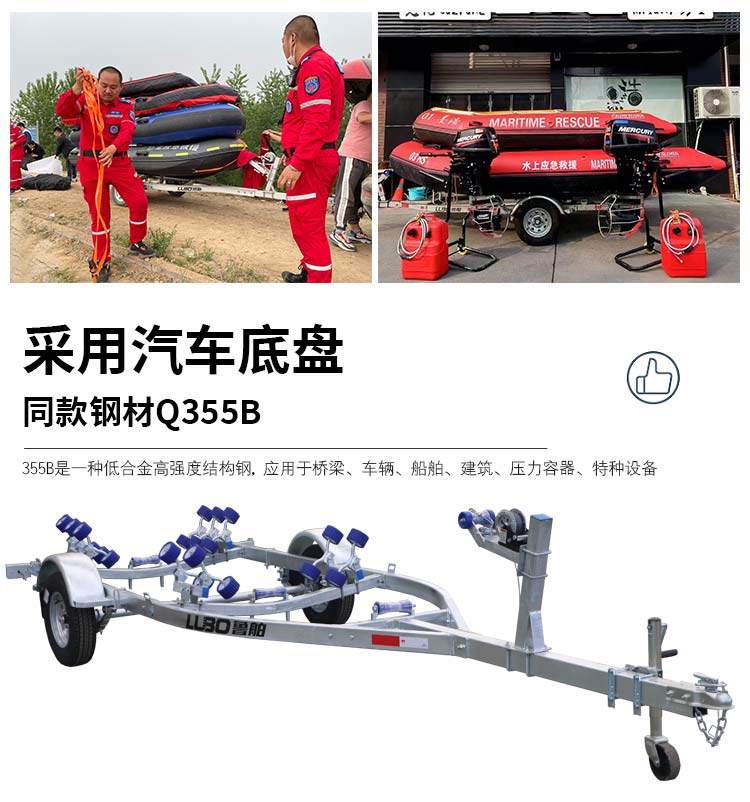 鲁舶拖车船用拖车防汛救援摩托艇拖车橡皮艇冲锋舟快艇游艇拖车架